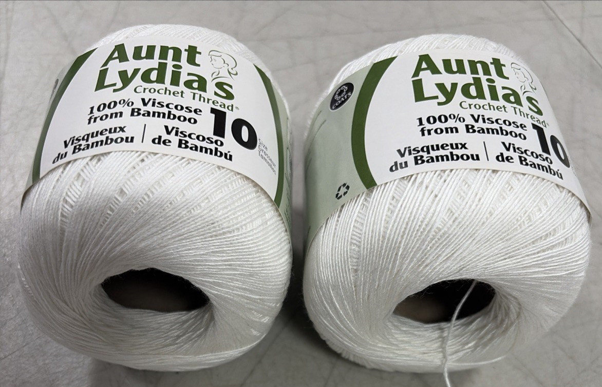 Aunt Lydia's Viscose From Bamboo Crochet Thread Size 10 White 600 Yds New