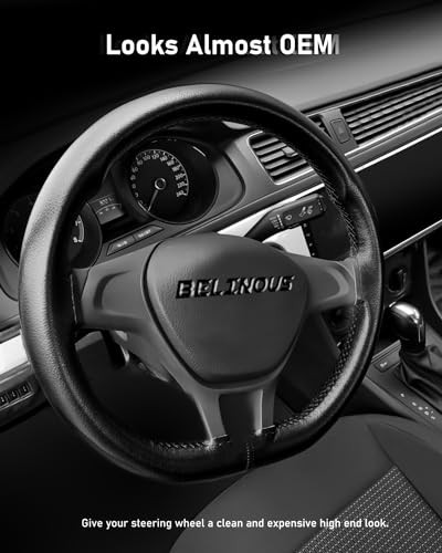 Belinous Leather Steering Wheel Cover Lace Up, Stitch on Steering M4 Black
