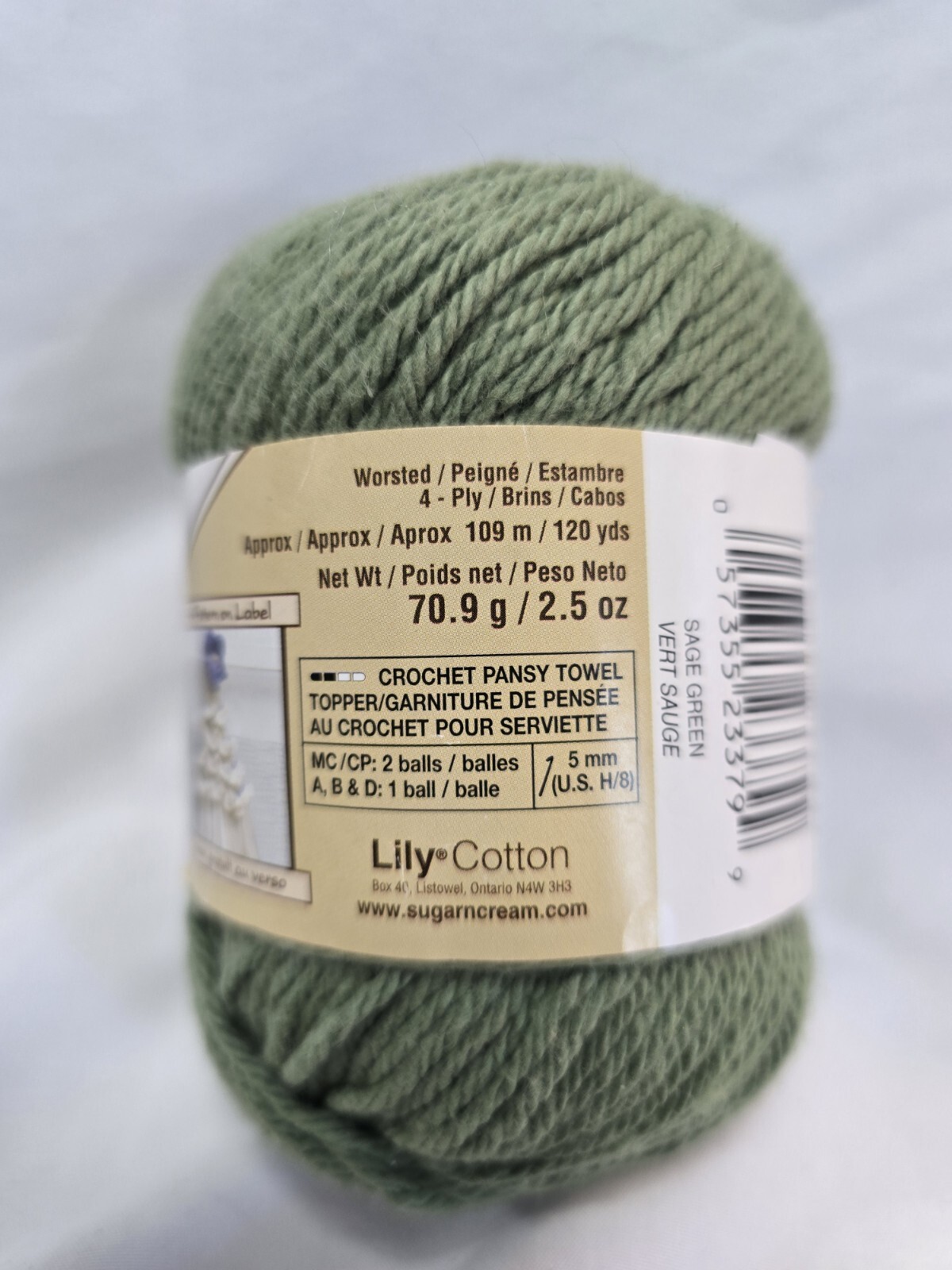 Sugar 'n Cream 100 Cotton Yarn Skein Color Sage Green 00084