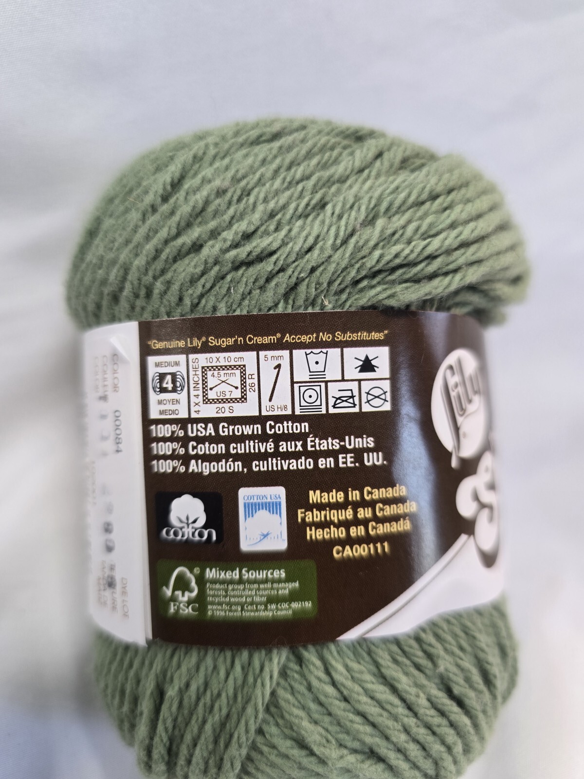 как выглядит Sugar n Cream 100 Cotton Yarn Skein Color Sage Green 00084 фото