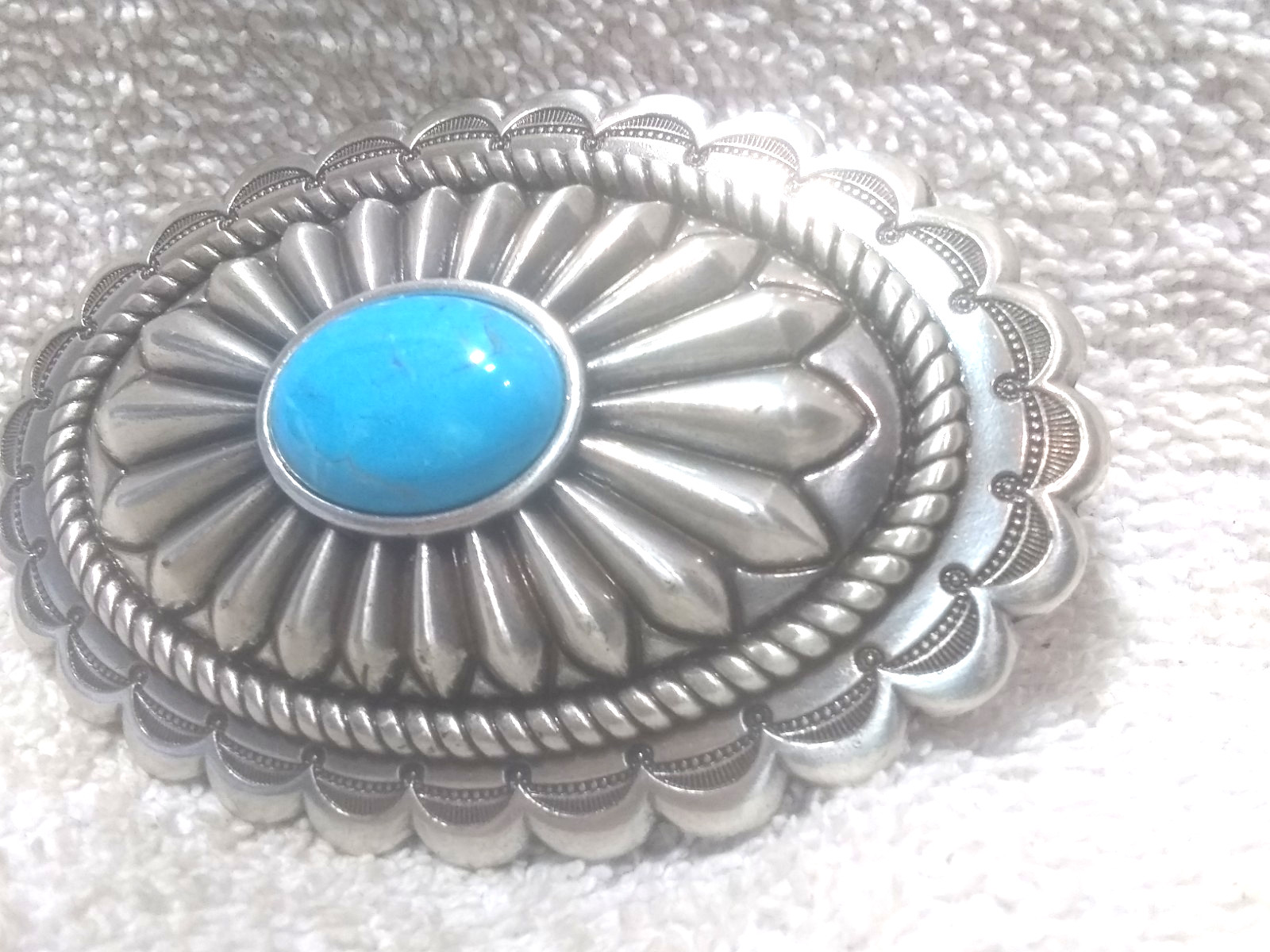 как выглядит Turquoise Center Stone Starburst Silver Engraved Belt Buckle Rib Edge Great фото