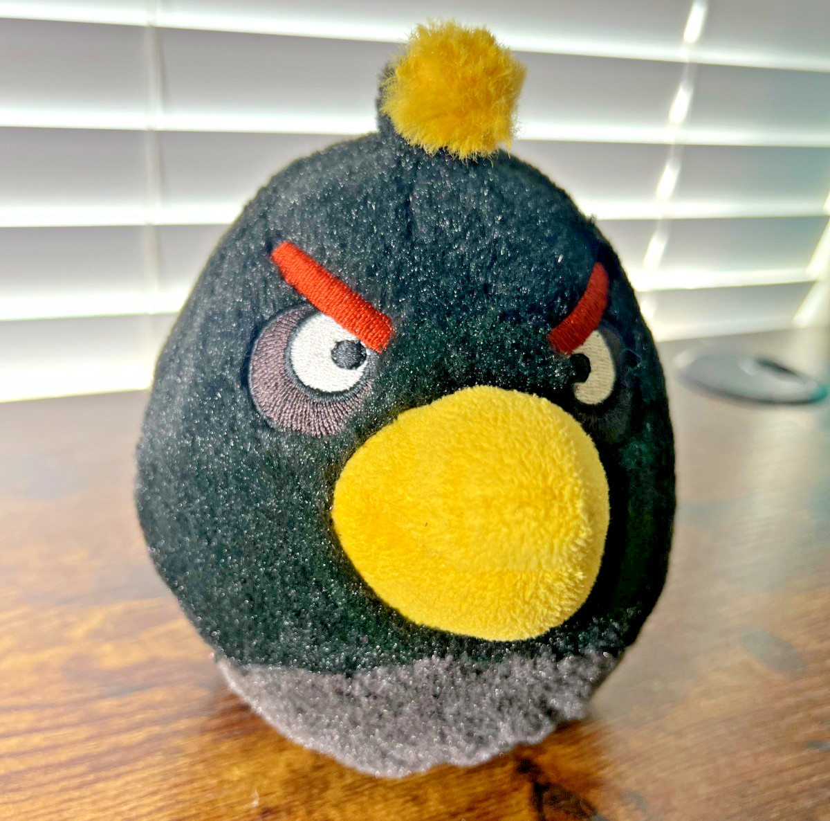 2011 Angry Birds Bomb Plush Toy 5 Black Yellow Stuffed Animal Rare Item EUC