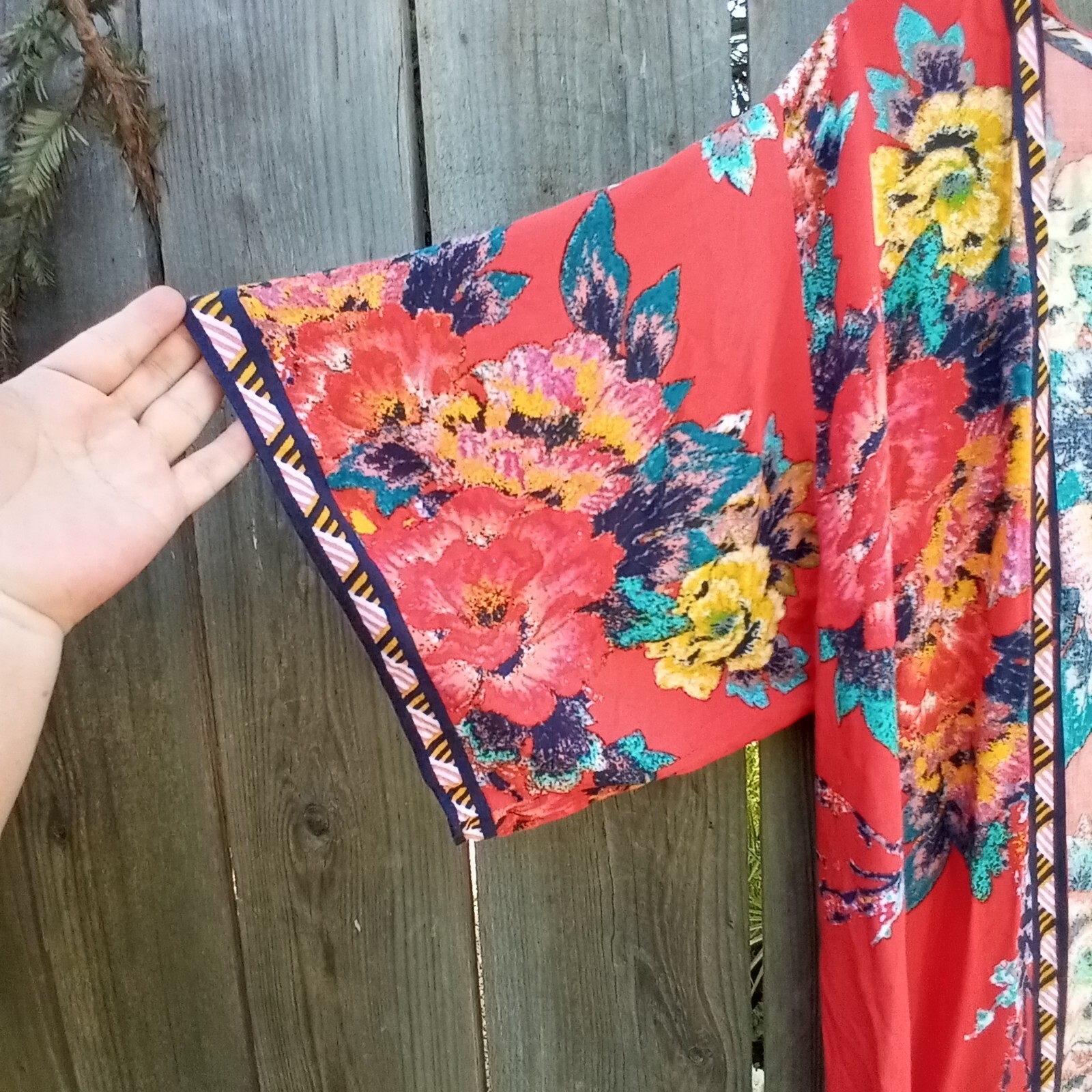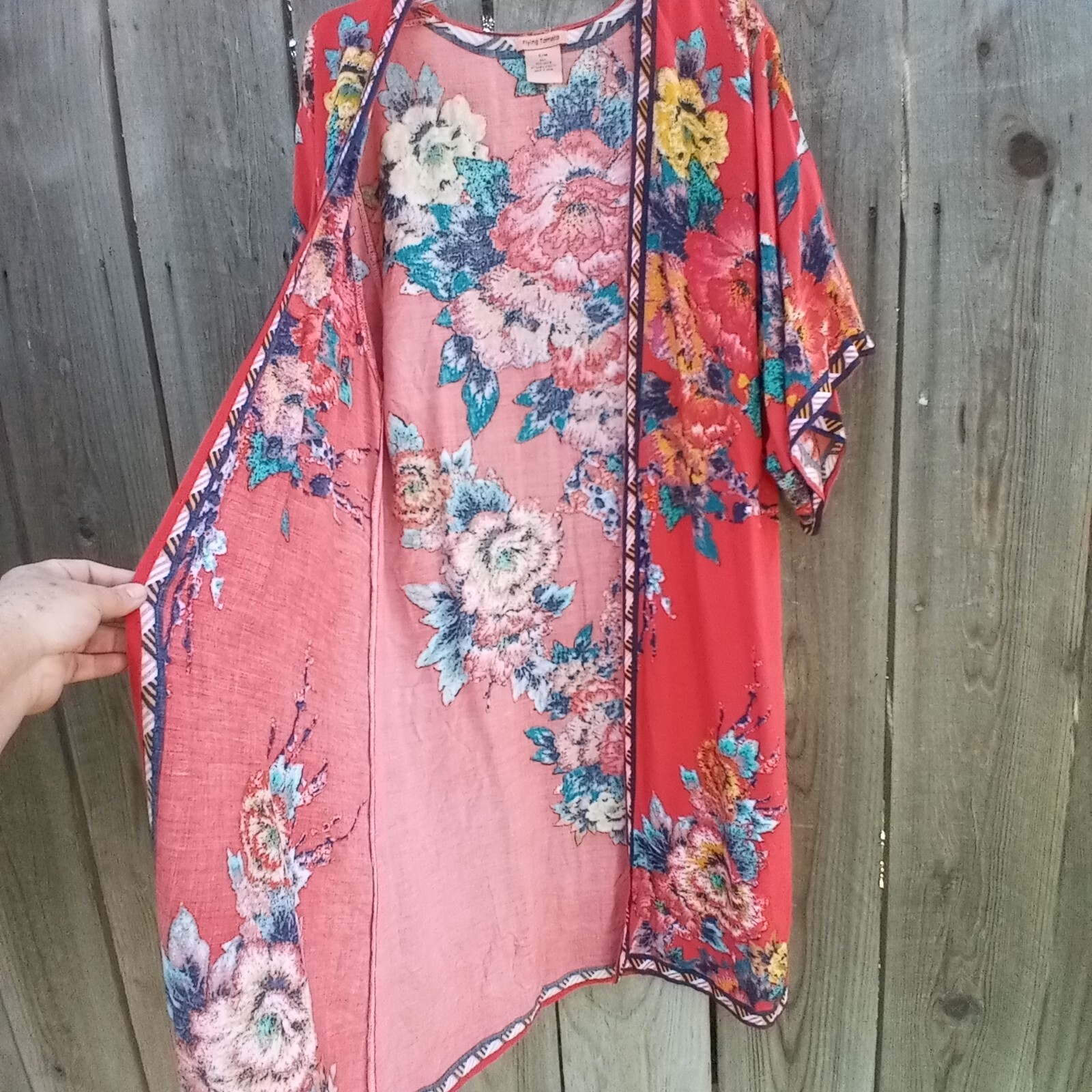как выглядит FLYING TOMATO FLORAL PRINT KIMONO- DUSTER WOMEN S/M OPEN BOHEMIAN SHORT SLEEVES фото