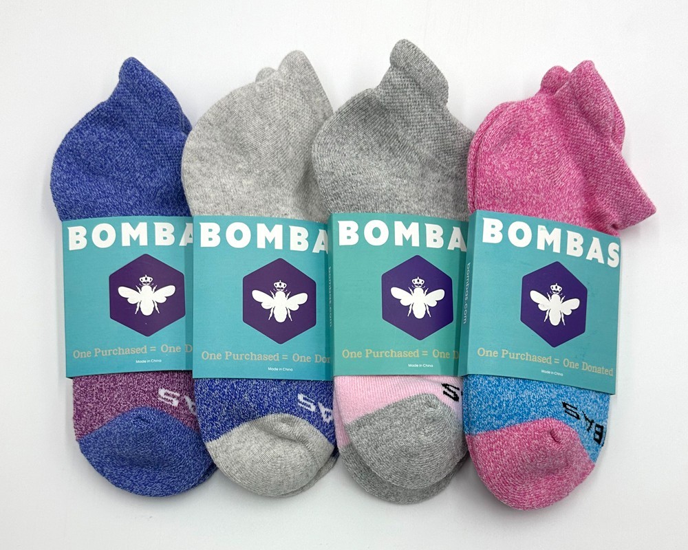 BOMBAS 4 Pairs Women's Tri-Block Ankle socks Cushion Size Med 4 Colors Mix NWT