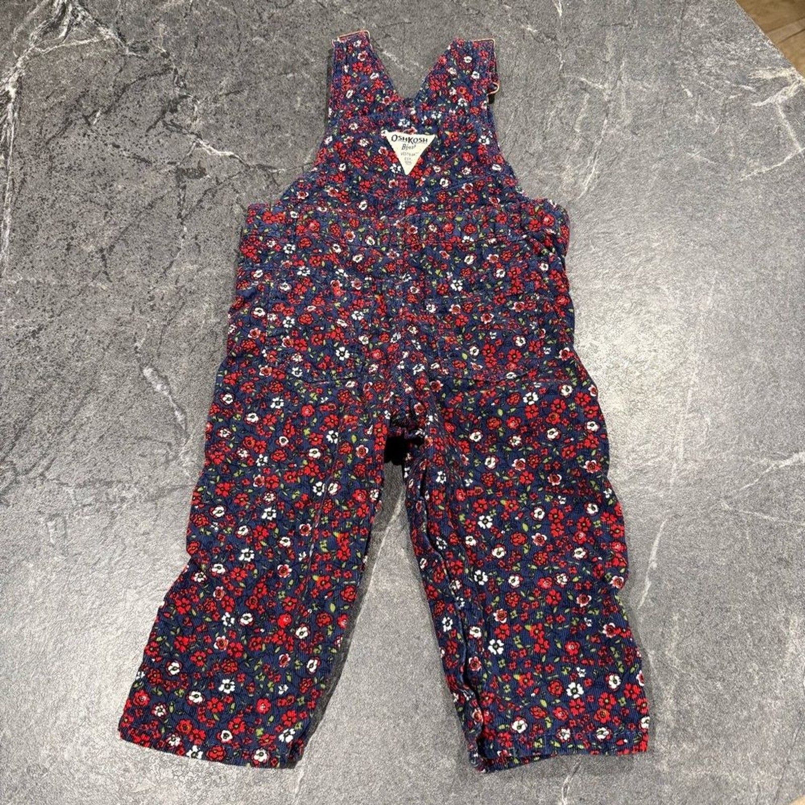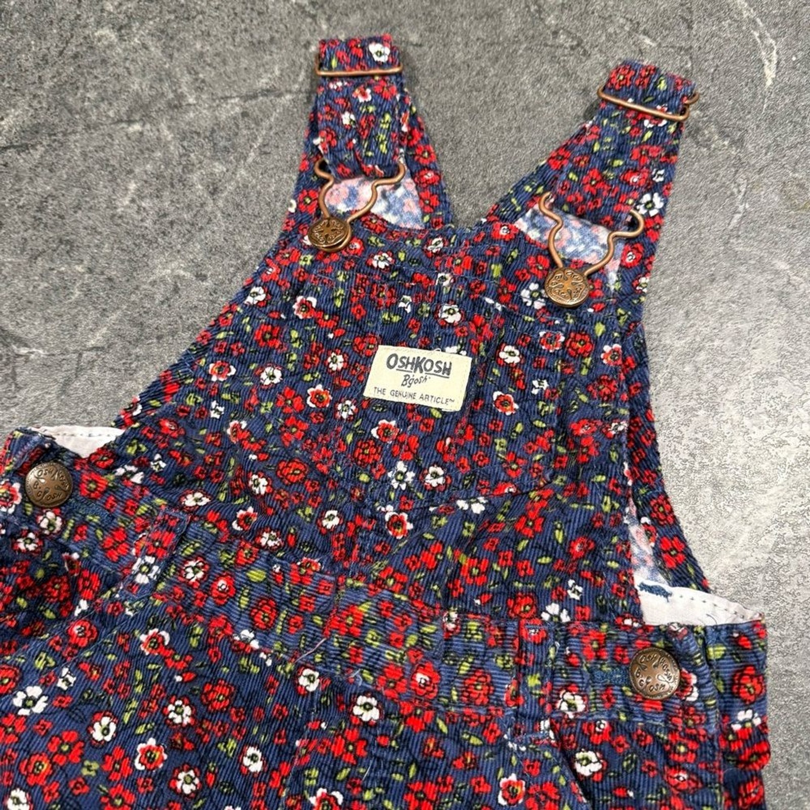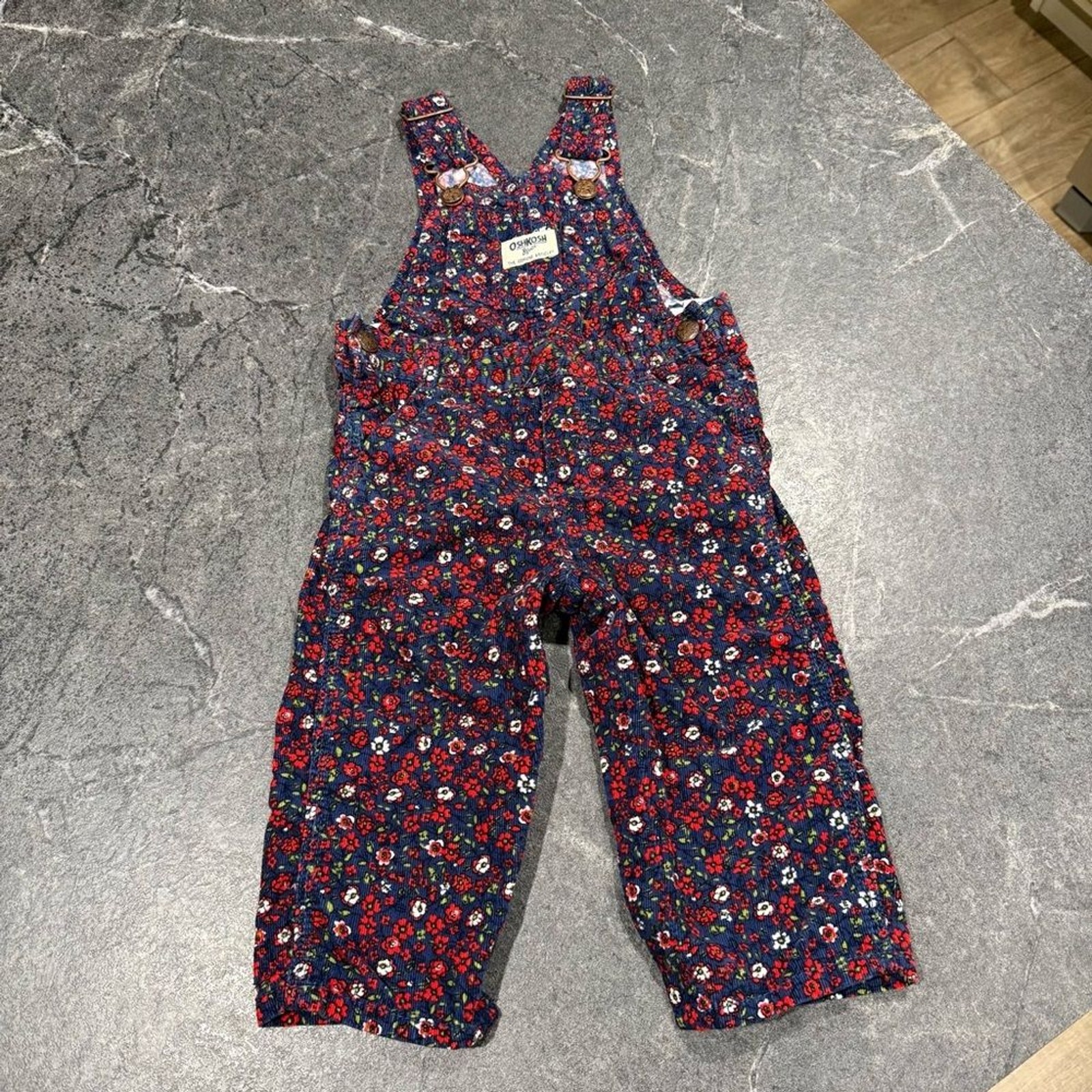 как выглядит Oshkosh 12 month floral overalls baby girl navy red фото