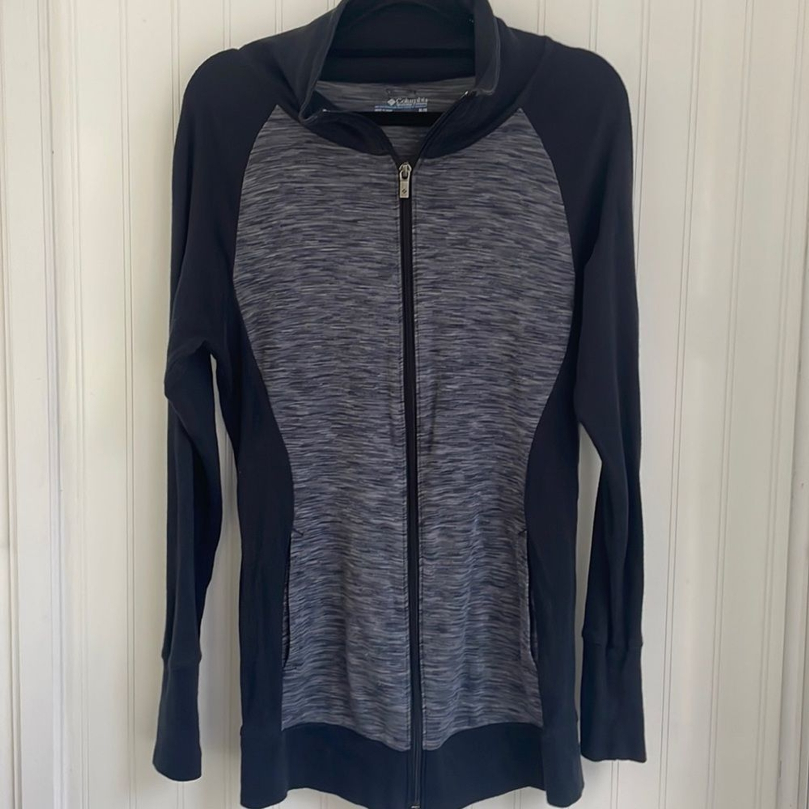 COLUMBIA women s gray and black full zip track gym jacket two pockets size M