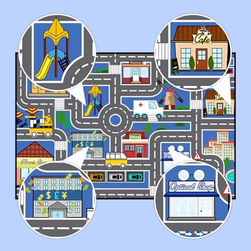 Car Rugs for Kids Toy - Blue Road Rug for Kids, Car Traffic Road Play Mat for