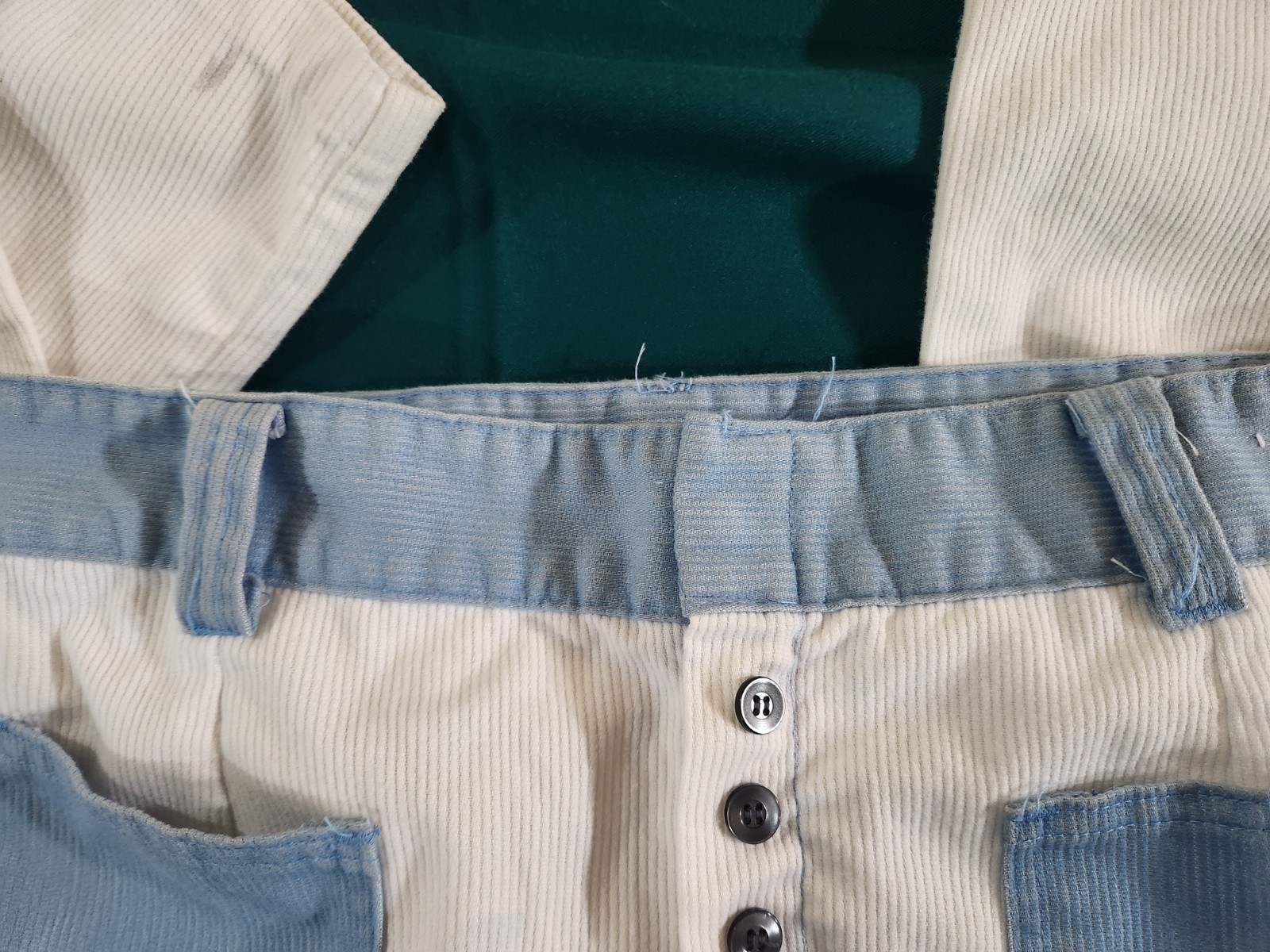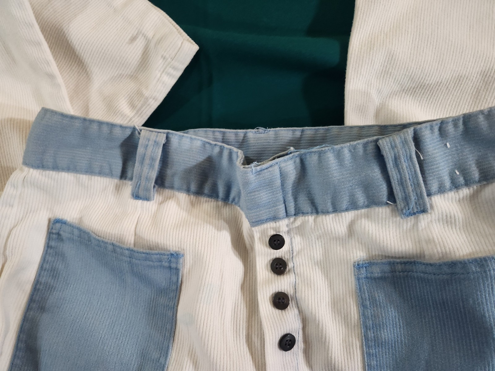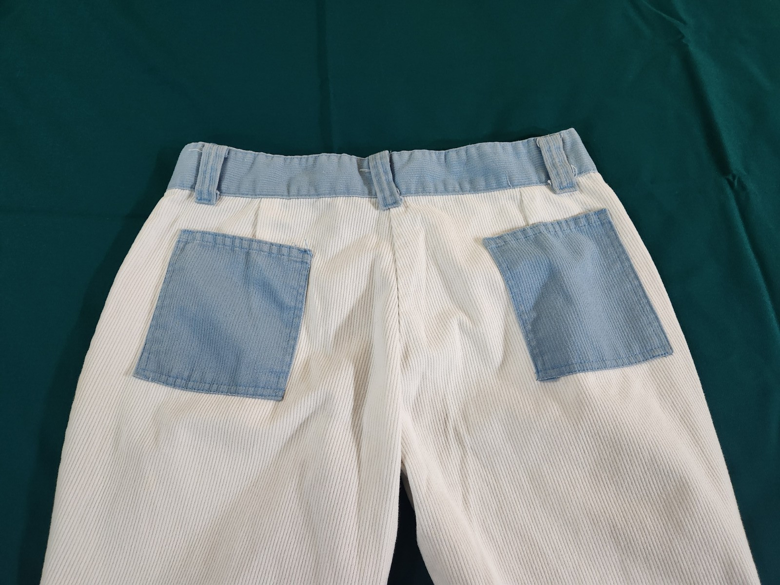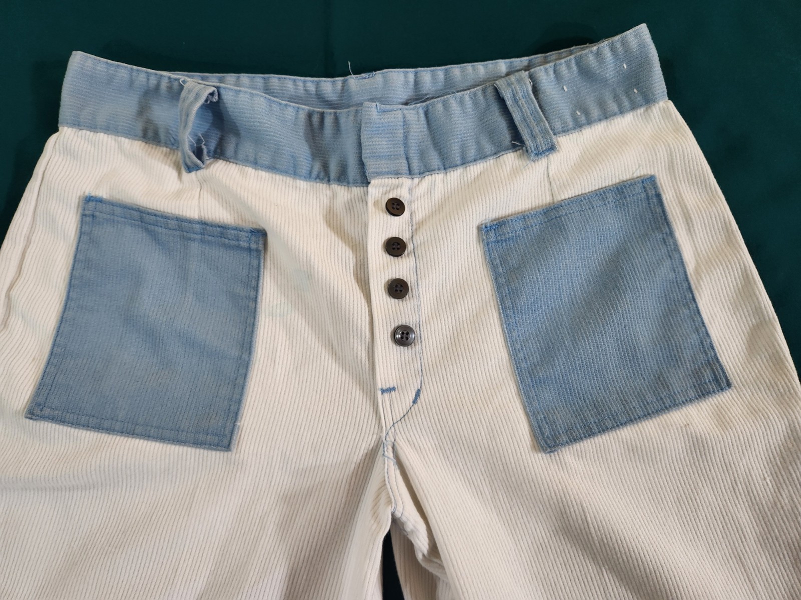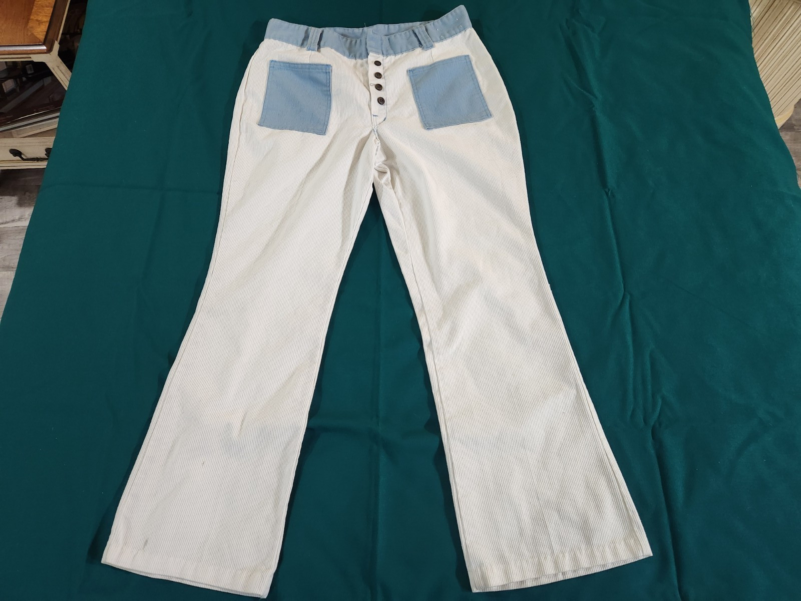 как выглядит Vintage 60s / 70s Hip Hugger White Corduroy Flares / Bell Bottoms Blue Pockets фото
