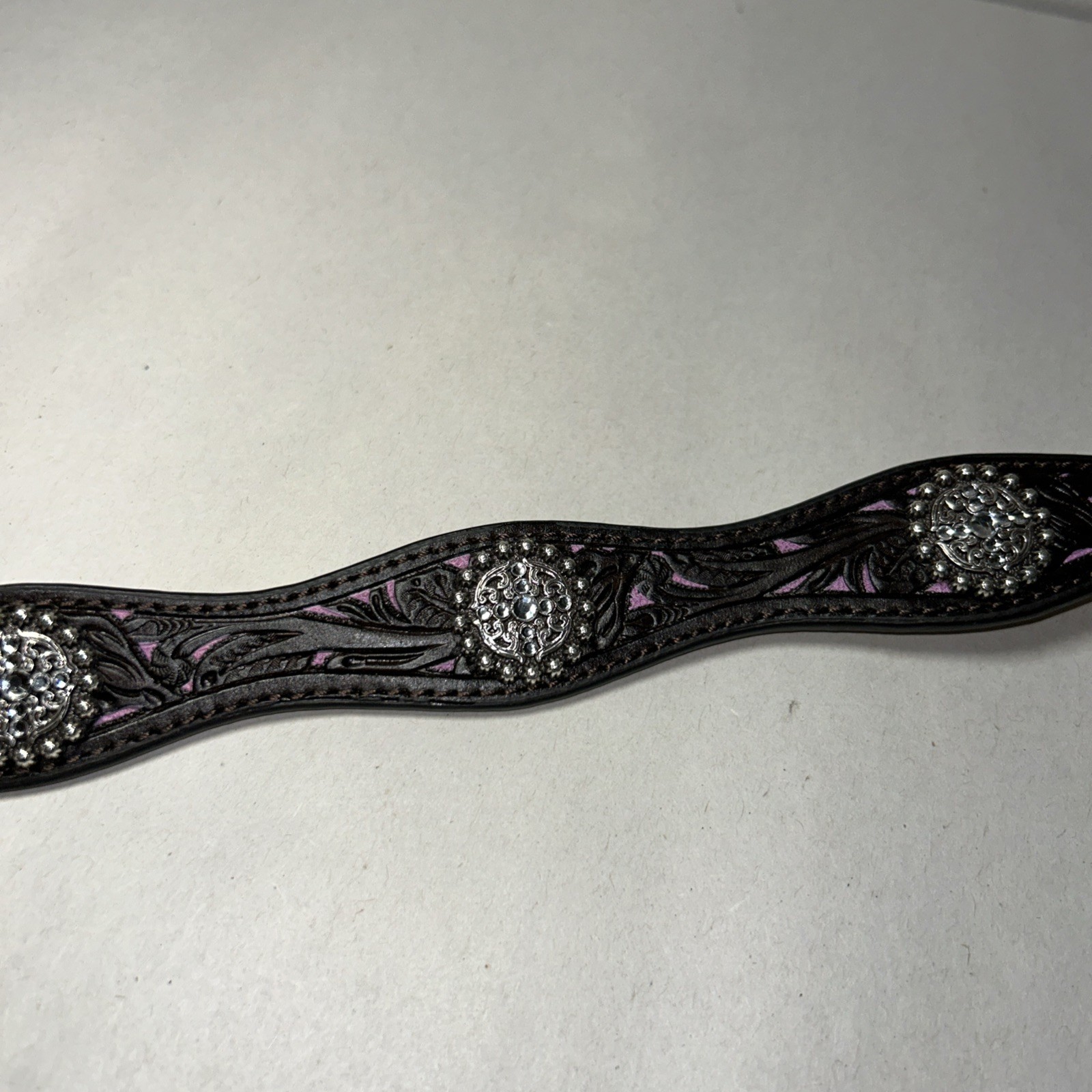 ARIAT LADIES FLORAL TOOLED W/purple INLAY BELT Concho Rhinestone Western 28