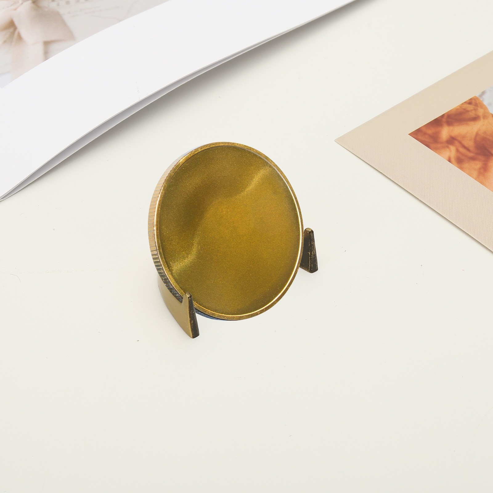 как выглядит Coin Display Stands, 4Pcs Mini Coin Easel Presentation Holder, Golden фото