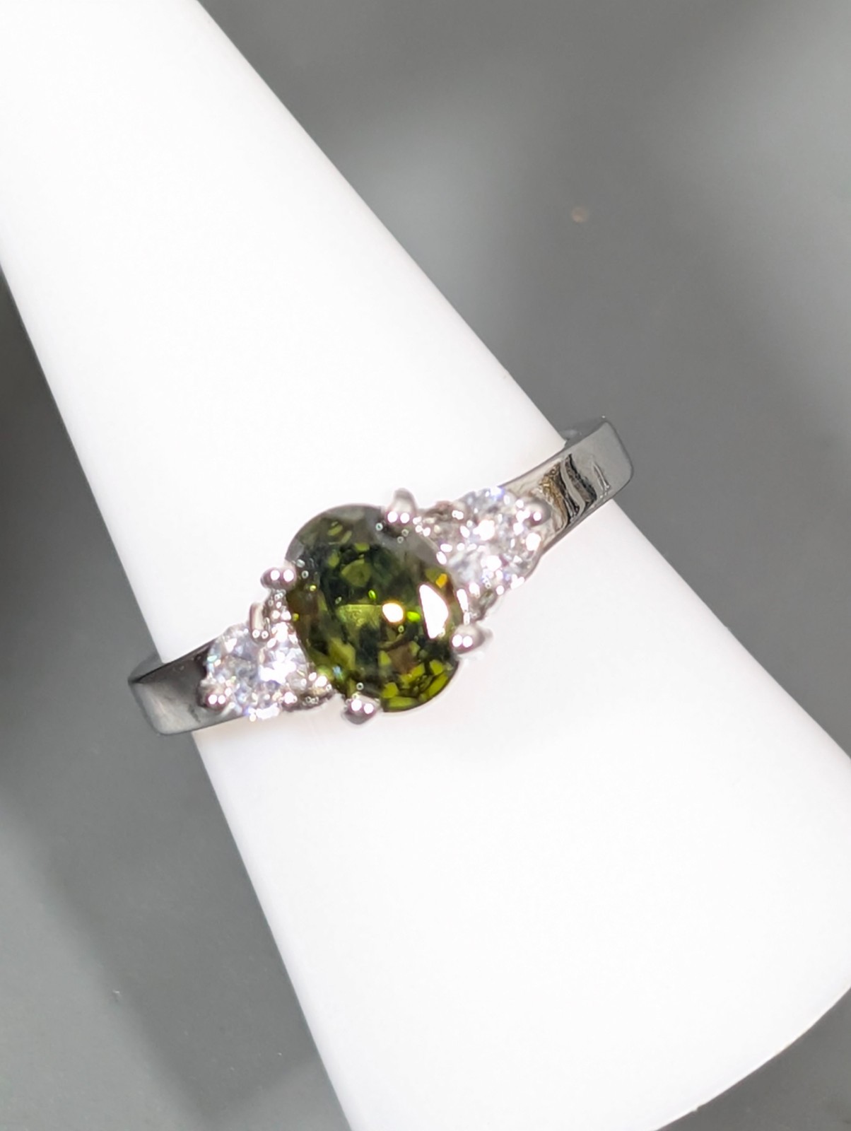 Silver Tone Oval Green CZ Solitaire With Accents Cocktail Ring Size 9