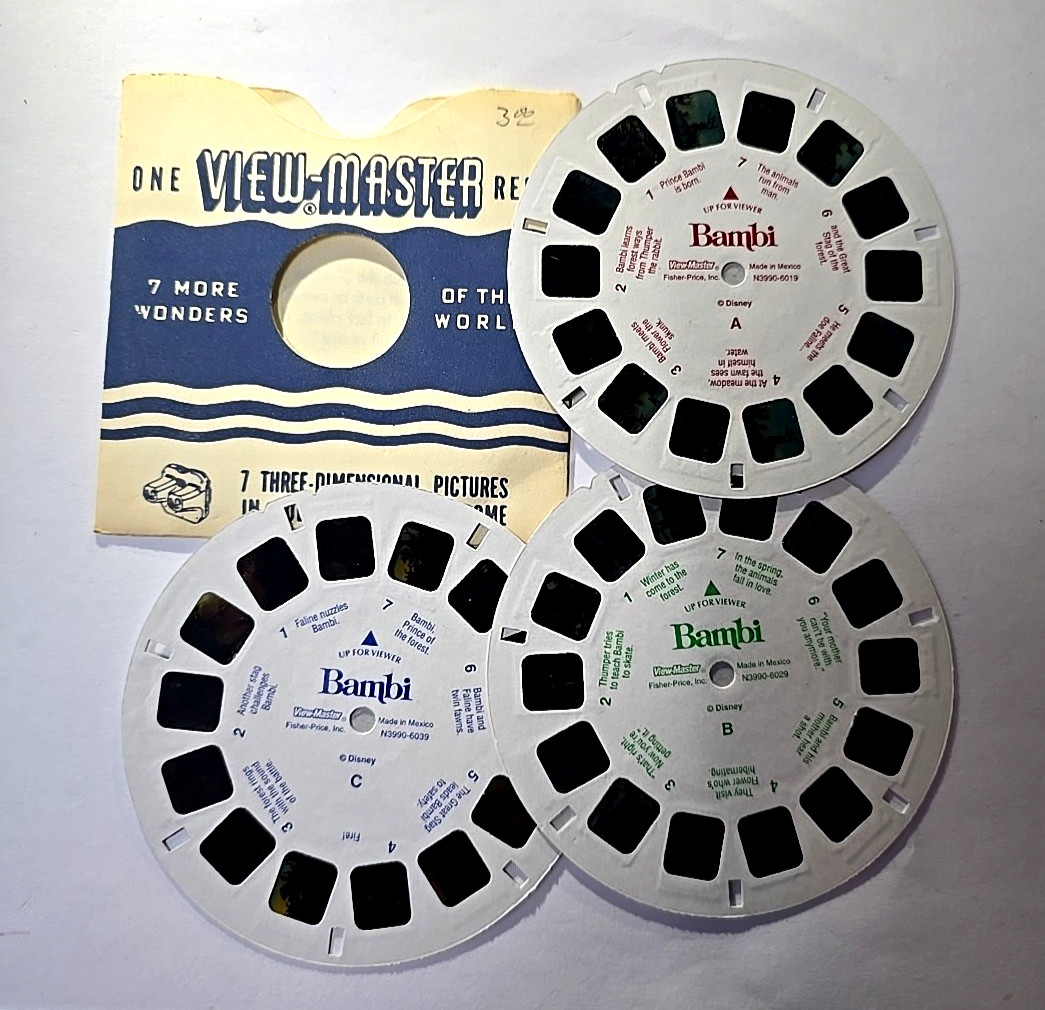 как выглядит Vintage Disney View-Master reel set featuring Bambi N3990 фото