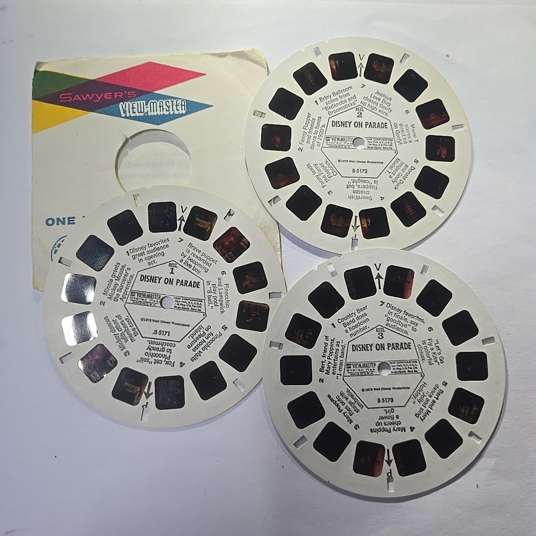 Vintage Disney View-Master reel set featuring Disney on Parade 1973
