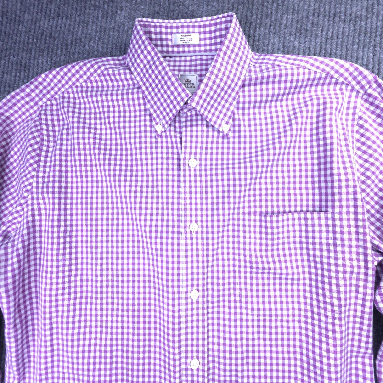 Peter Millar Shirt Men Medium Purple Check Long Sleeve Button Up Nanoluxe Preppy