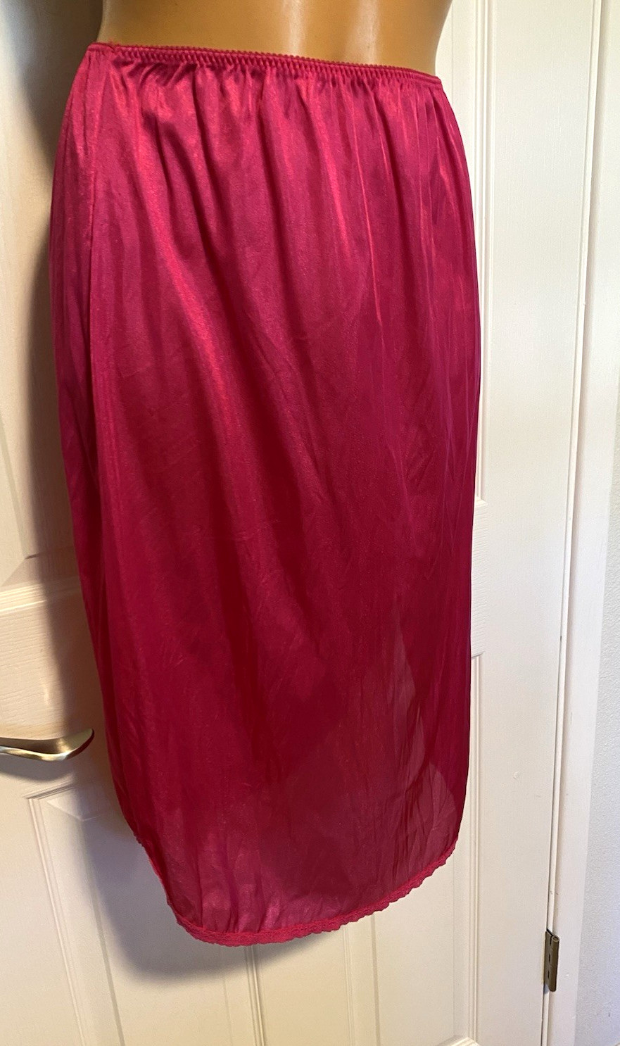 как выглядит VTG 1960S SYLRAY HOT PINK NYLON W/ LACE TRIM HALF SLIP USA SZ S фото