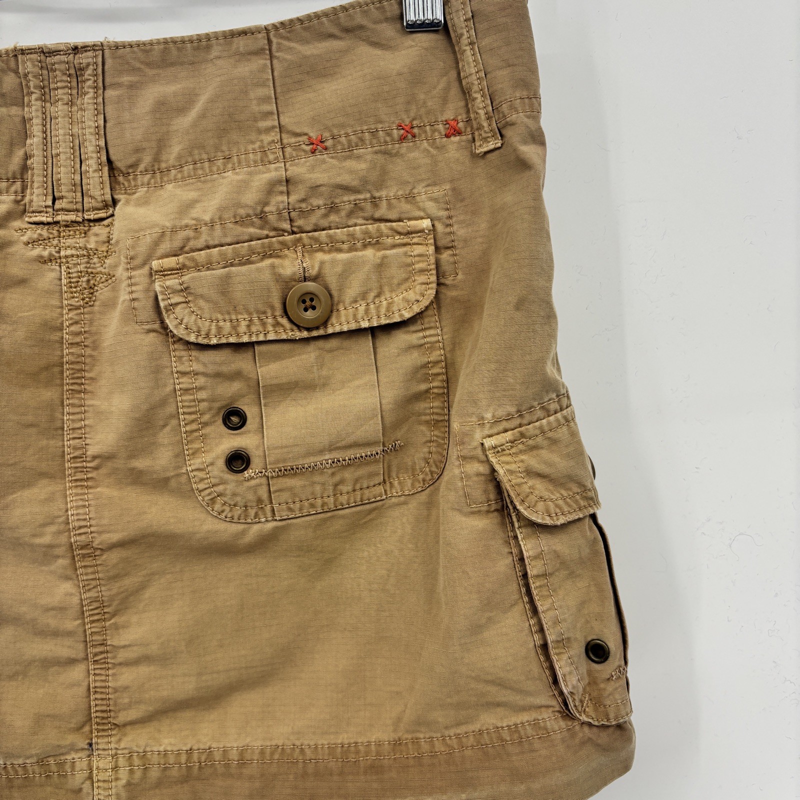 как выглядит Old Navy Y2K Khaki Cargo Mini Skirt Womens 2 Distressed Ultra Low Waist 90