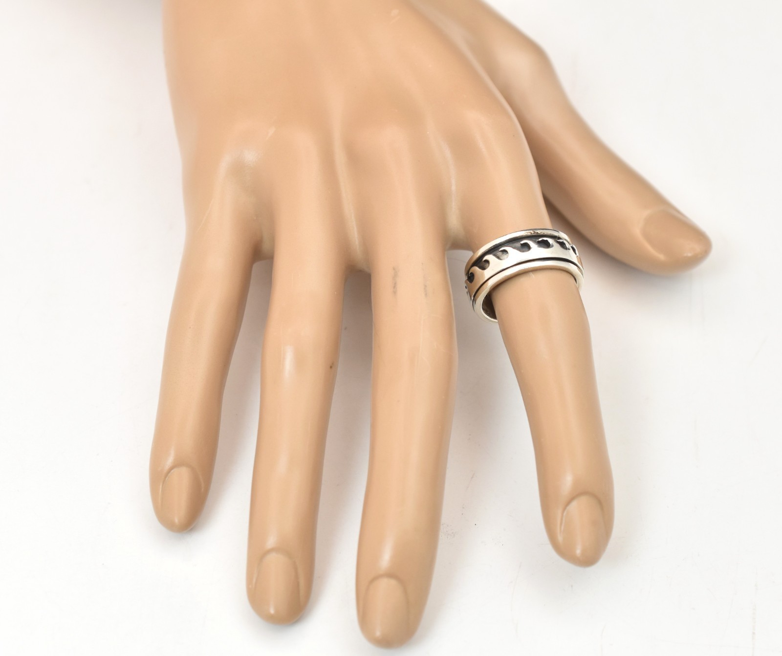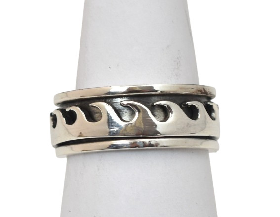 925 Sterling Silver Spinner Ring Waves Fidget Spinning Wedding Band Unisex 6.5 8