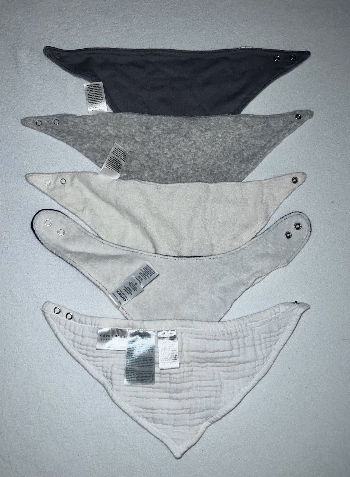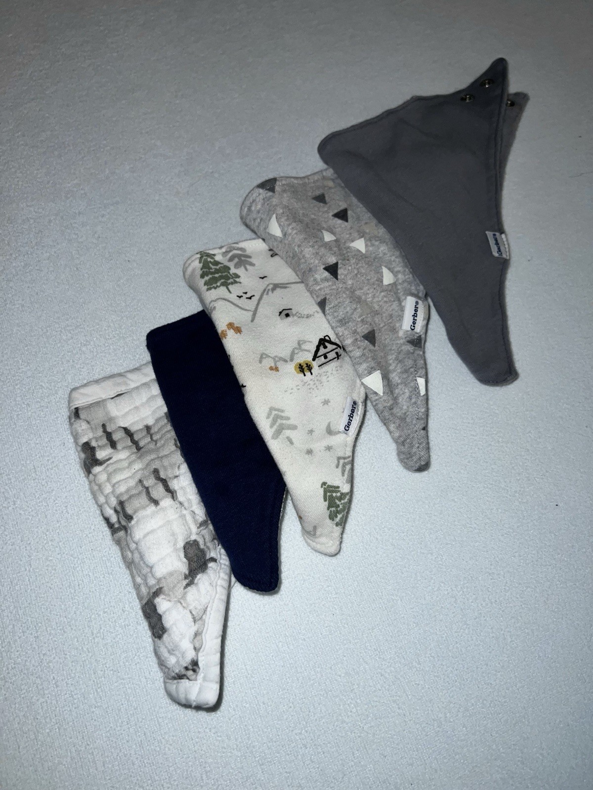 Triangle Snap Baby Feeding Drool Bibs Bandanas Terry Cloth Muslin Boys Lot Of 5