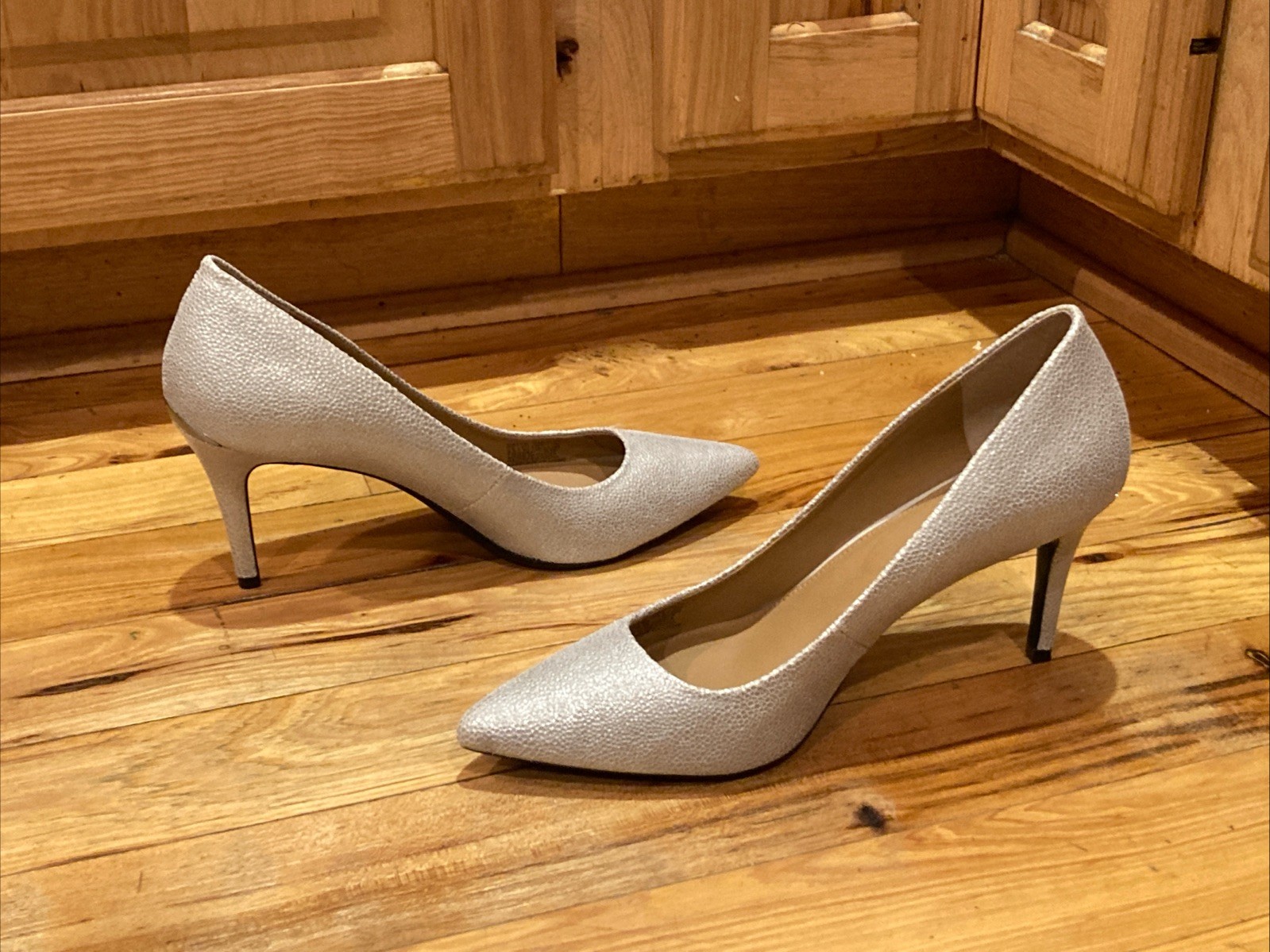как выглядит Calvin Klein Gayle Silver Gray Stingray Pump Pointed Heels Shoes Womens 9.5M фото