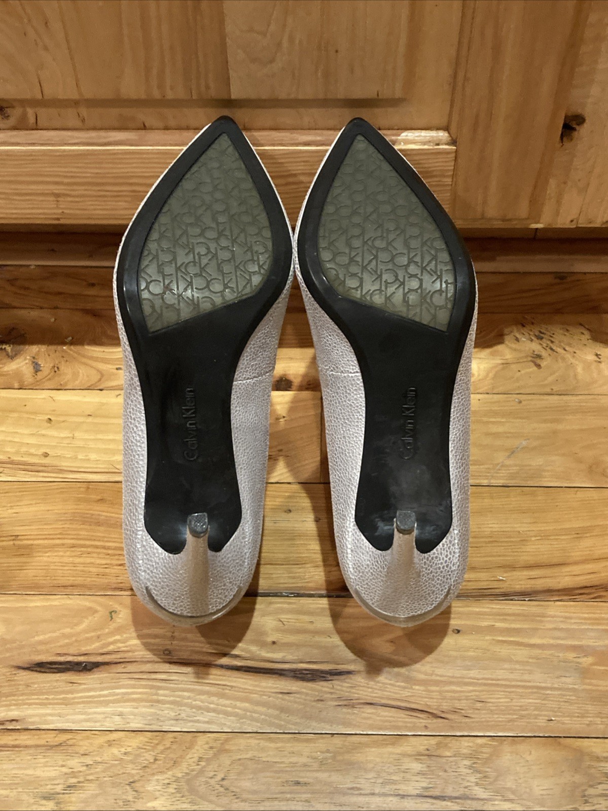 Calvin Klein Gayle Silver Gray Stingray Pump Pointed Heels Shoes Womens 9.5M