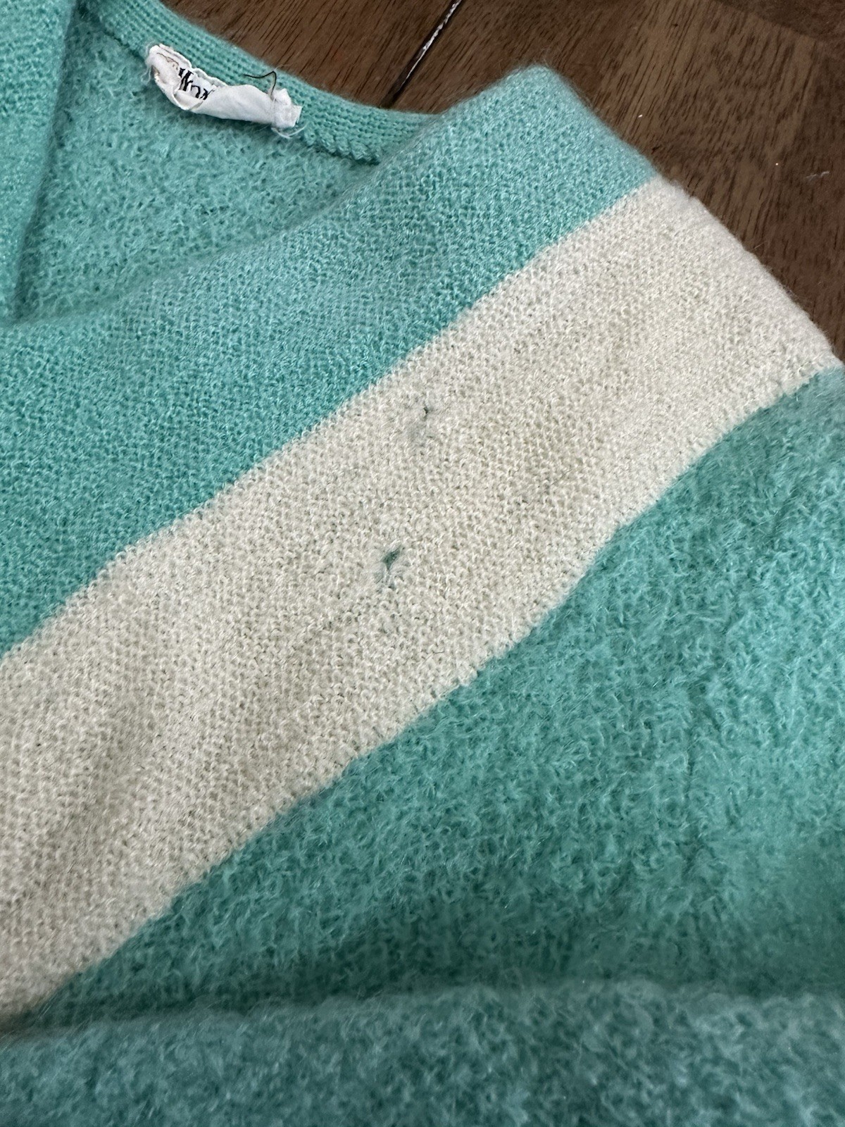 50/60s Wondamere Wool Sweater, Petite Small, Mint Green And Ivory
