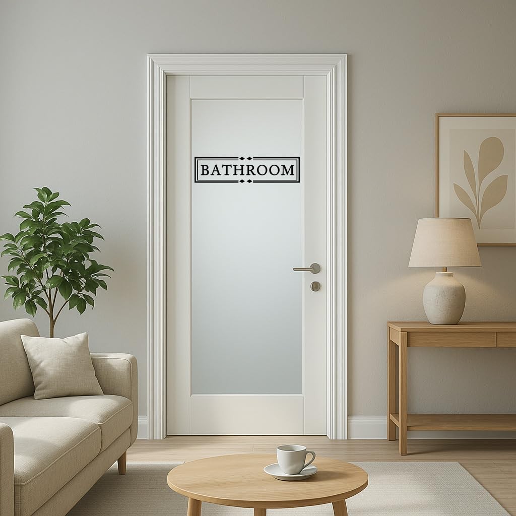 Bathroom Door Decal Black Vinyl Wall Sticker Sign Farmhouse 15.5x4,