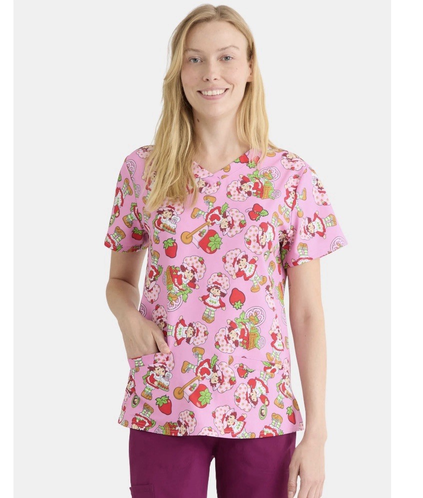 Women's Strawberry Shortcake Pink Graphic Scrub Top Size Small