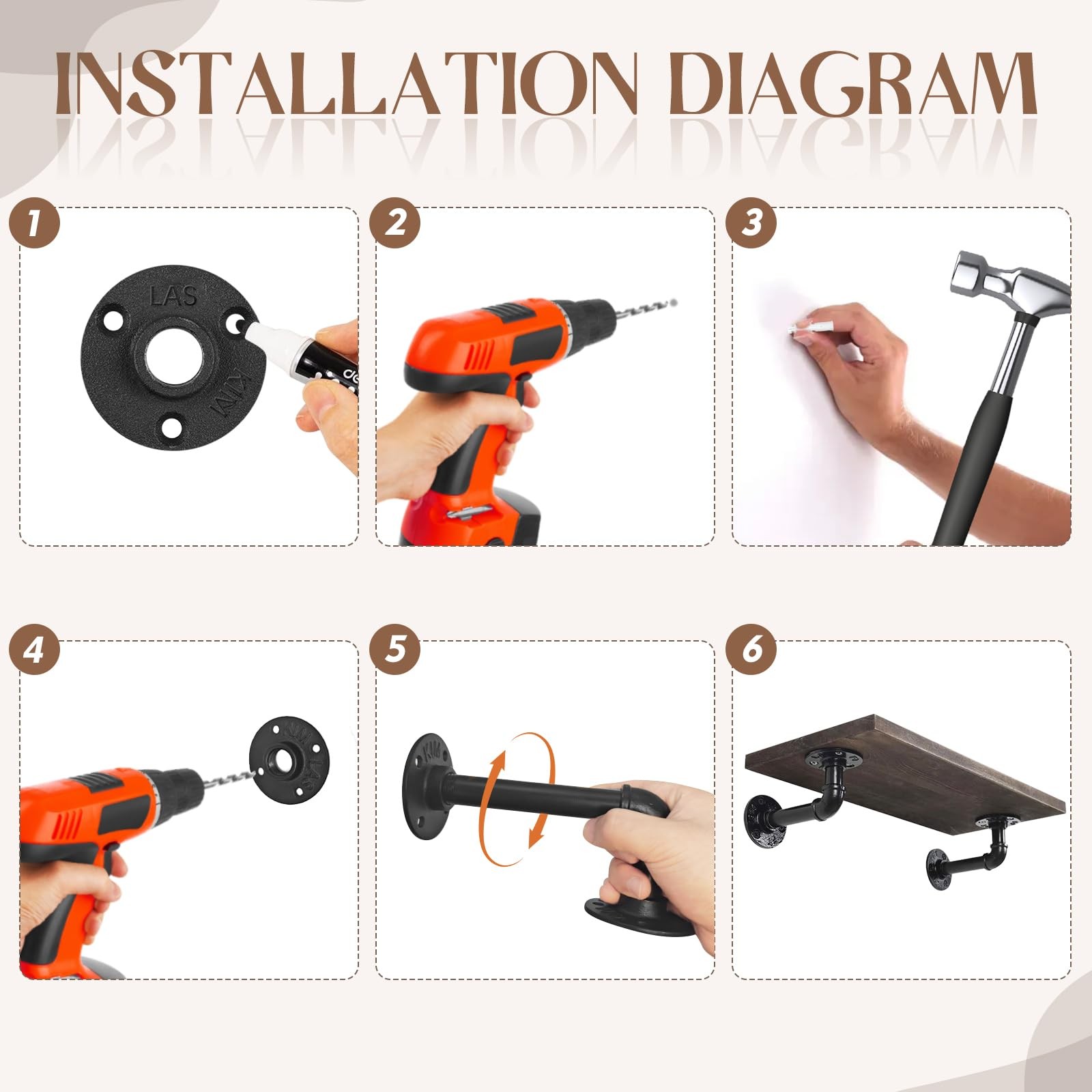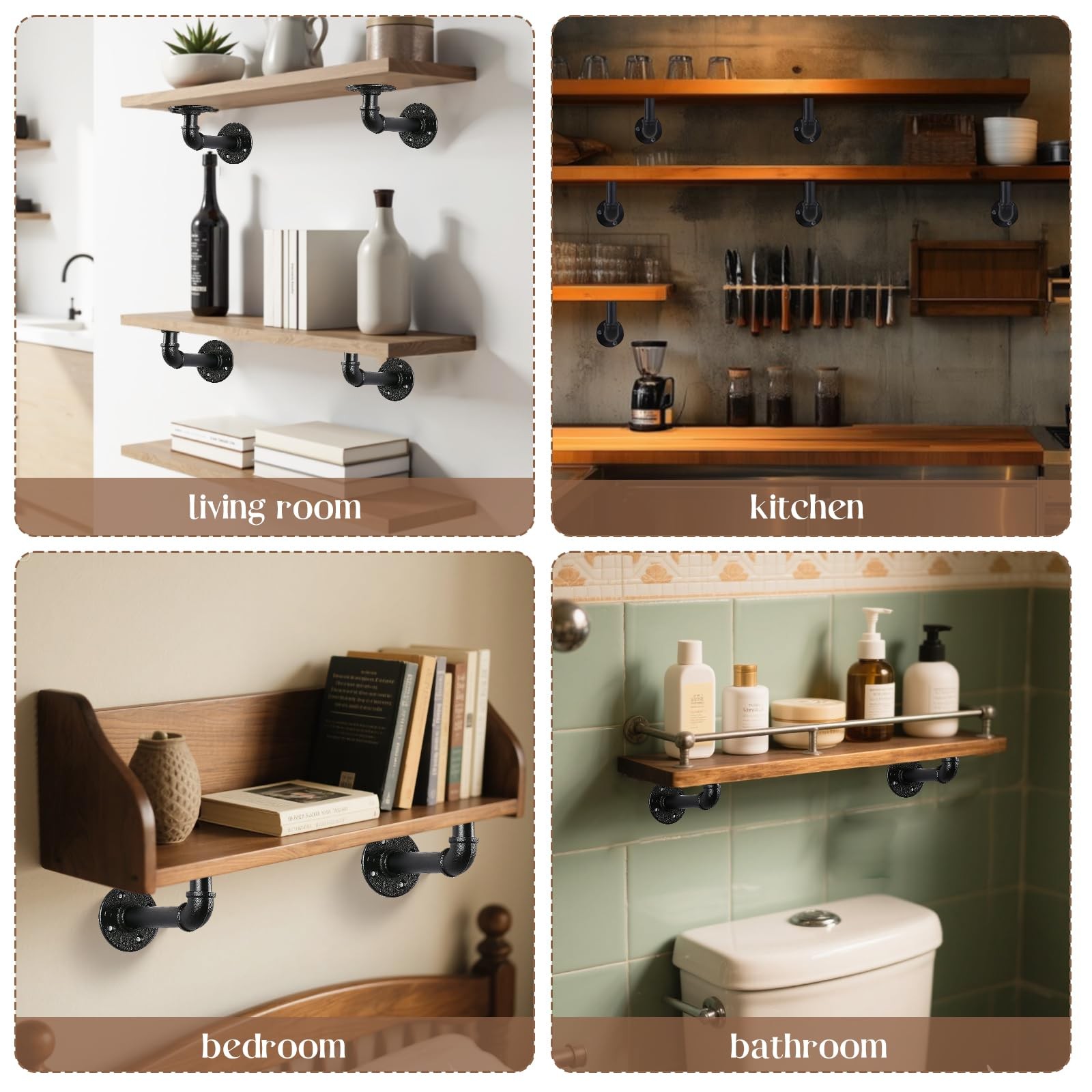 4 Pack Pipe Shelf Bracket, Black L Custom Pipe Floating Shelf Bracket, Wall M...