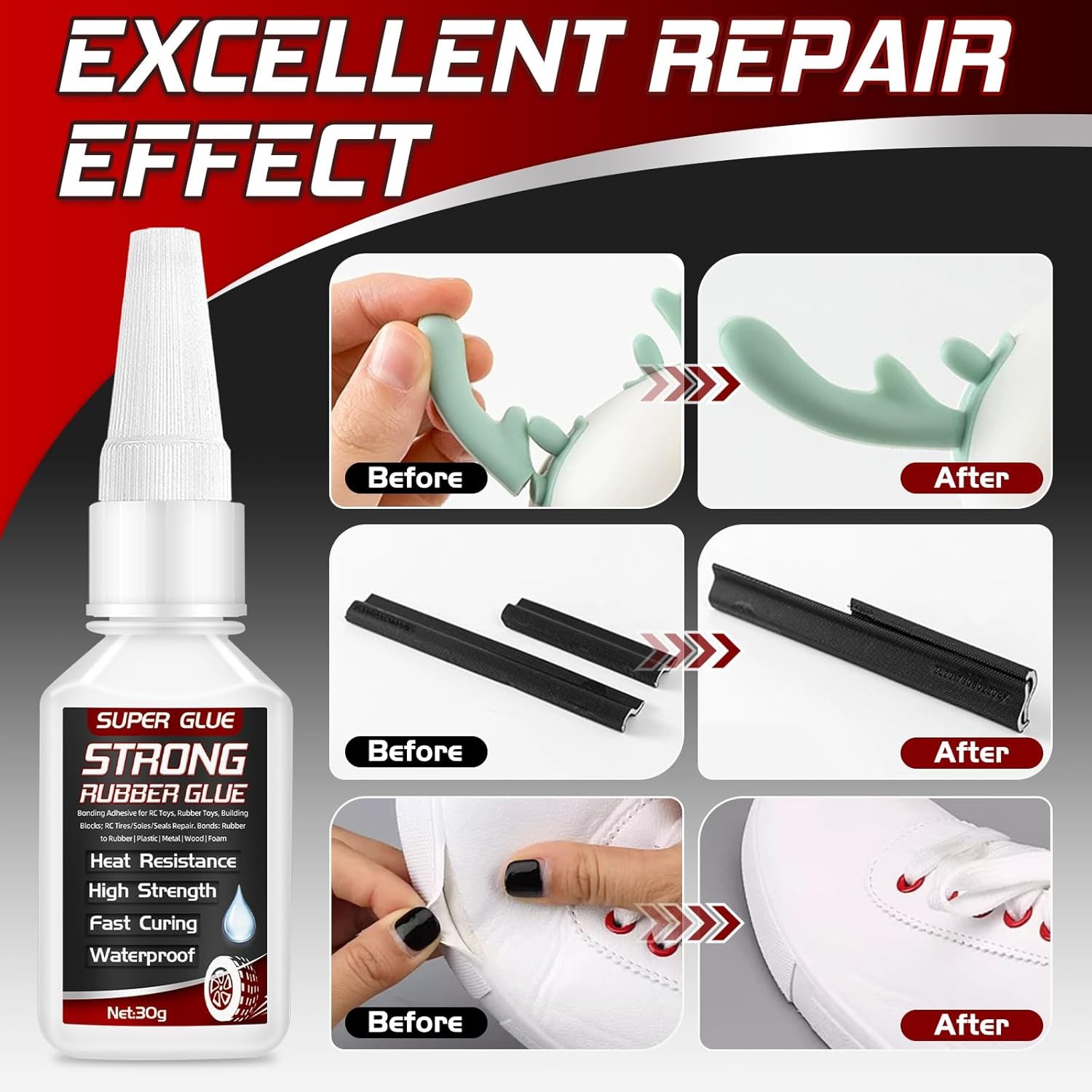 Rubber Glue, 30g Super Glue for Rubber, Tires, Seals, Gaskets, Shoe Soles, Hose,