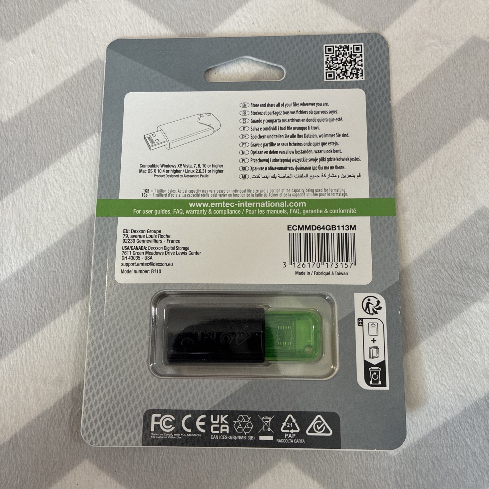 Emtec Dexxon B110 Click Easy 64GB USB 3.2 Stick Flash Drive Green Capless 20mb/s