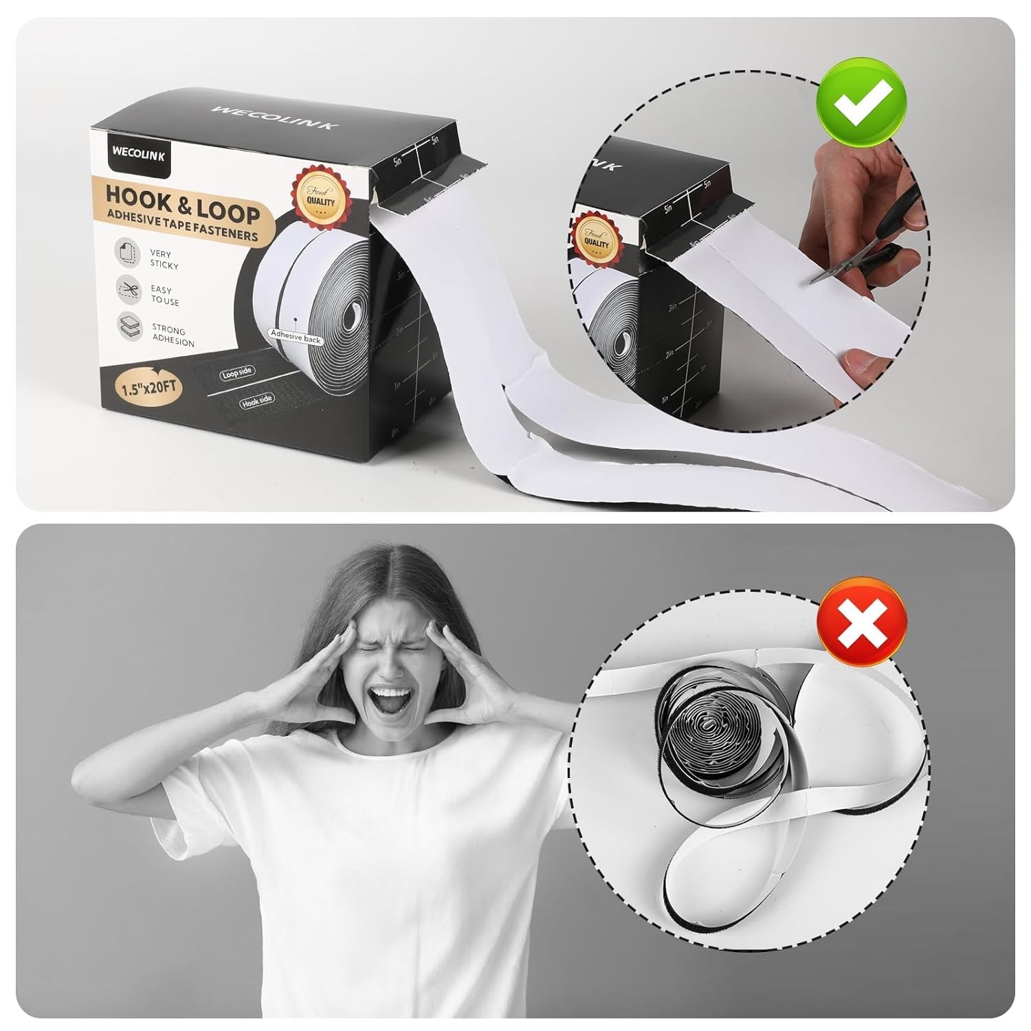 20Ft X 1.5 Inch Hook and Loop Tape Strips with Adhesive, Heavy Duty Sticky Back