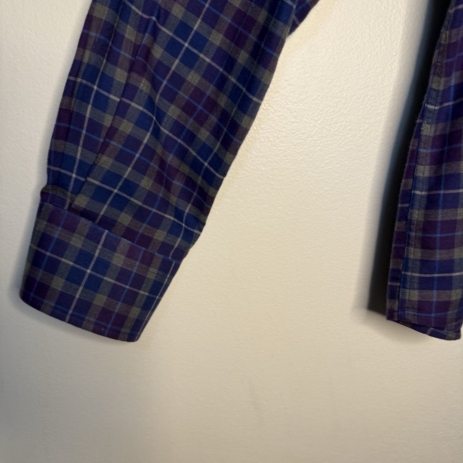 Peter Millar Purple Blue Check Long Sleeve Button Down Shirt Men's Sz Large