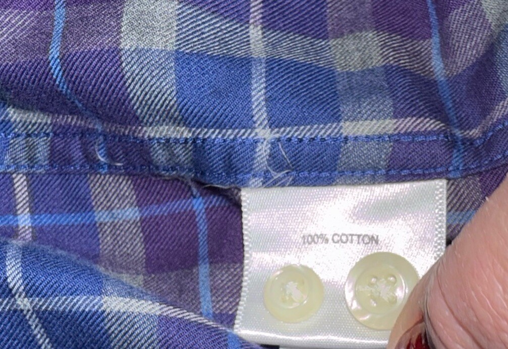 как выглядит Peter Millar Purple Blue Check Long Sleeve Button Down Shirt Mens Sz Large фото
