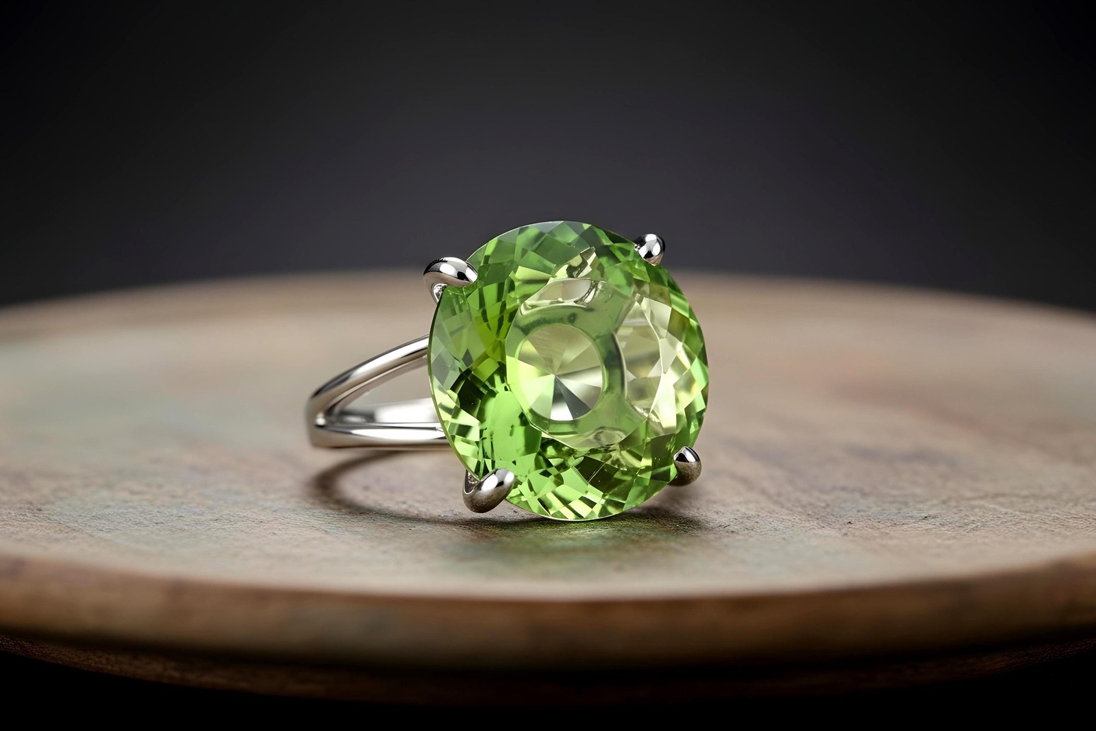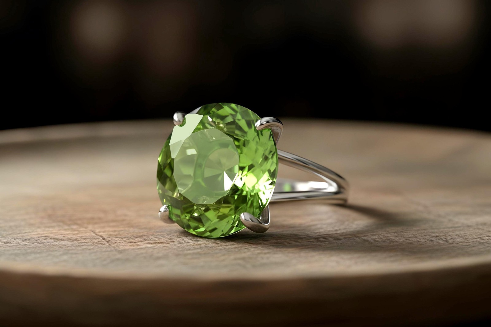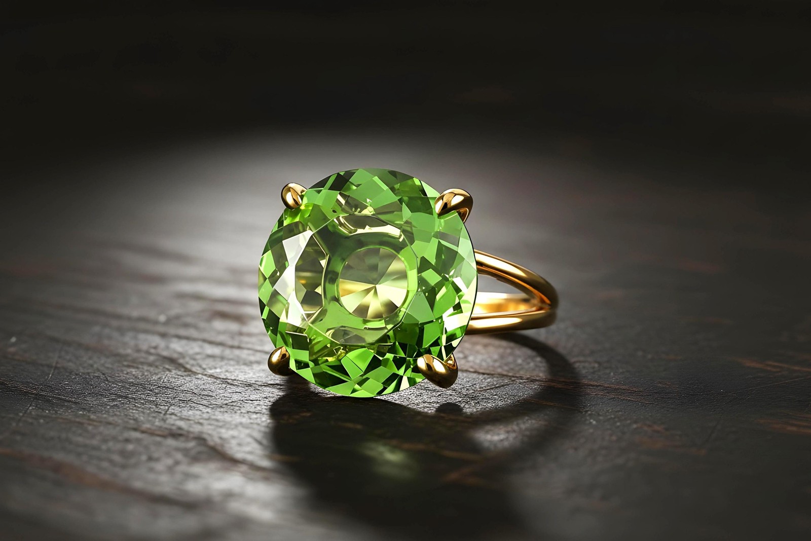 Green Tourmaline Ring 14k Gold Round Cut Split Band October Birthstone