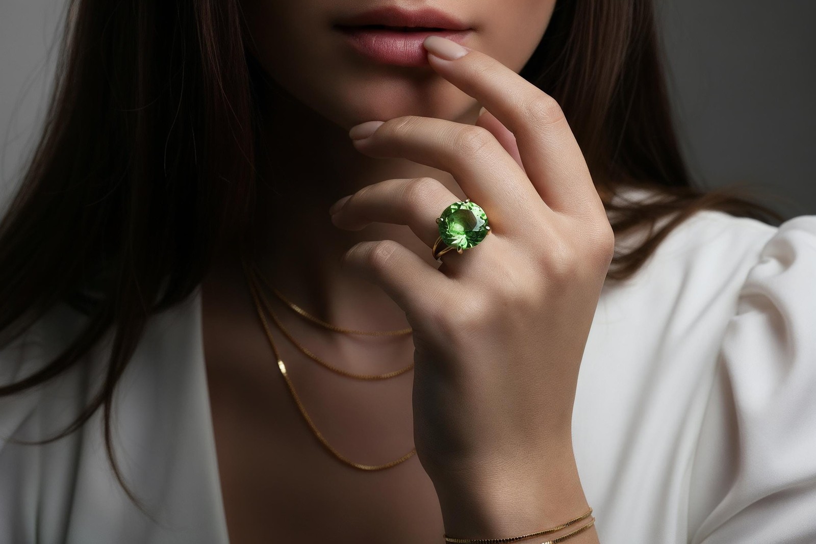 как выглядит Green Tourmaline Ring 14k Gold Round Cut Split Band October Birthstone фото