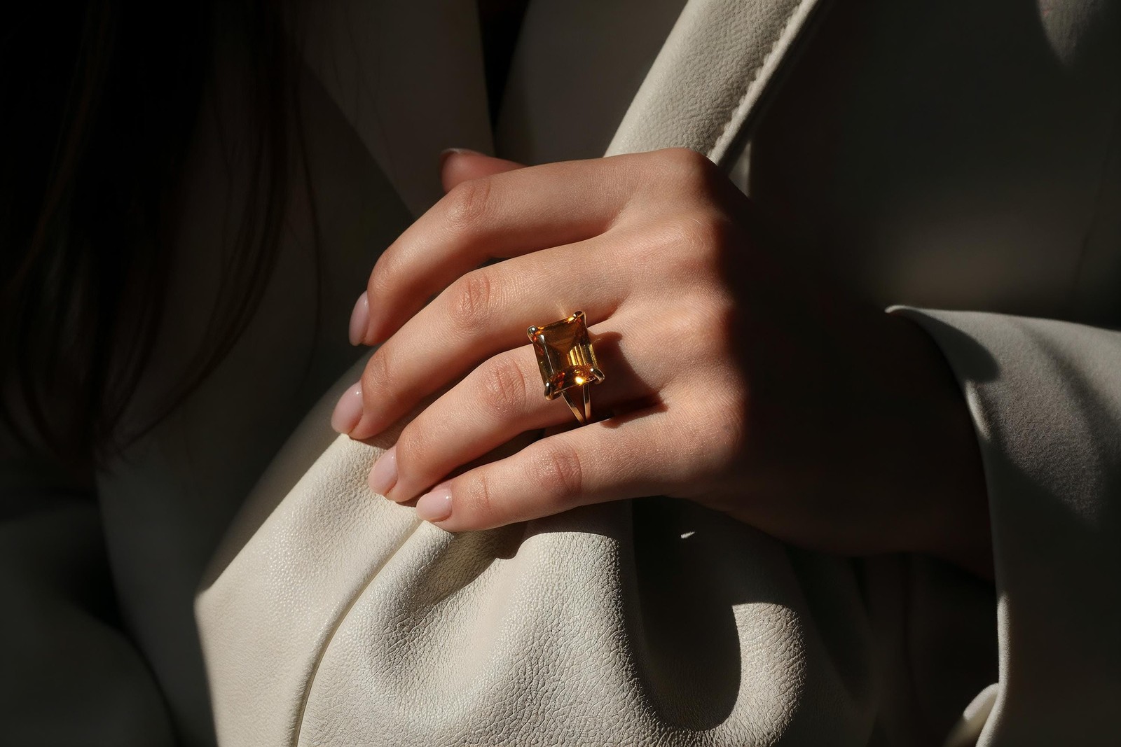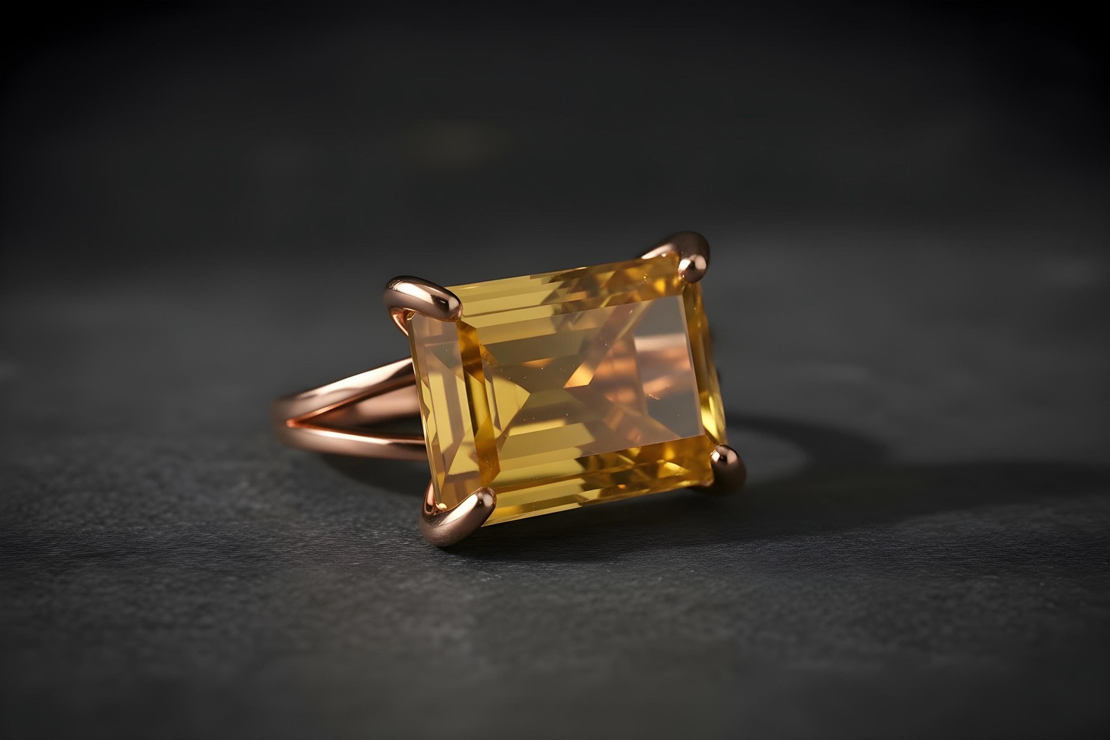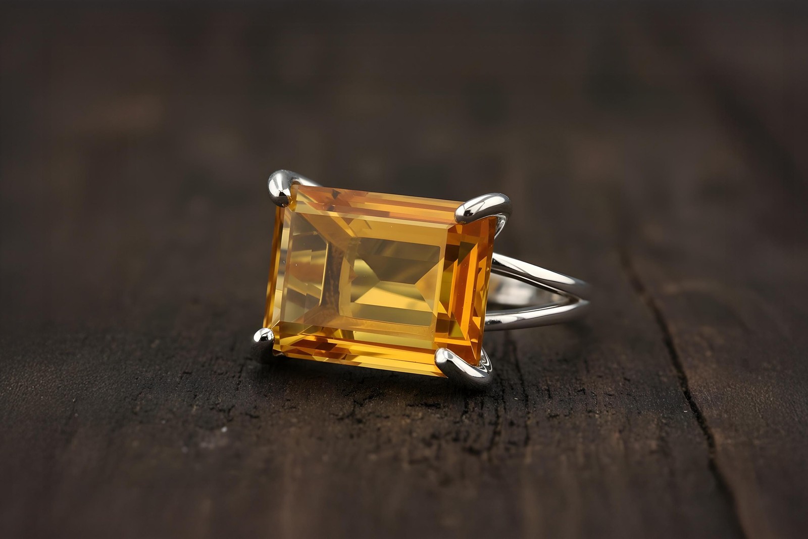 как выглядит 14k Gold Citrine Ring Emerald Cut Rectangle November Birthstone Jewelry фото