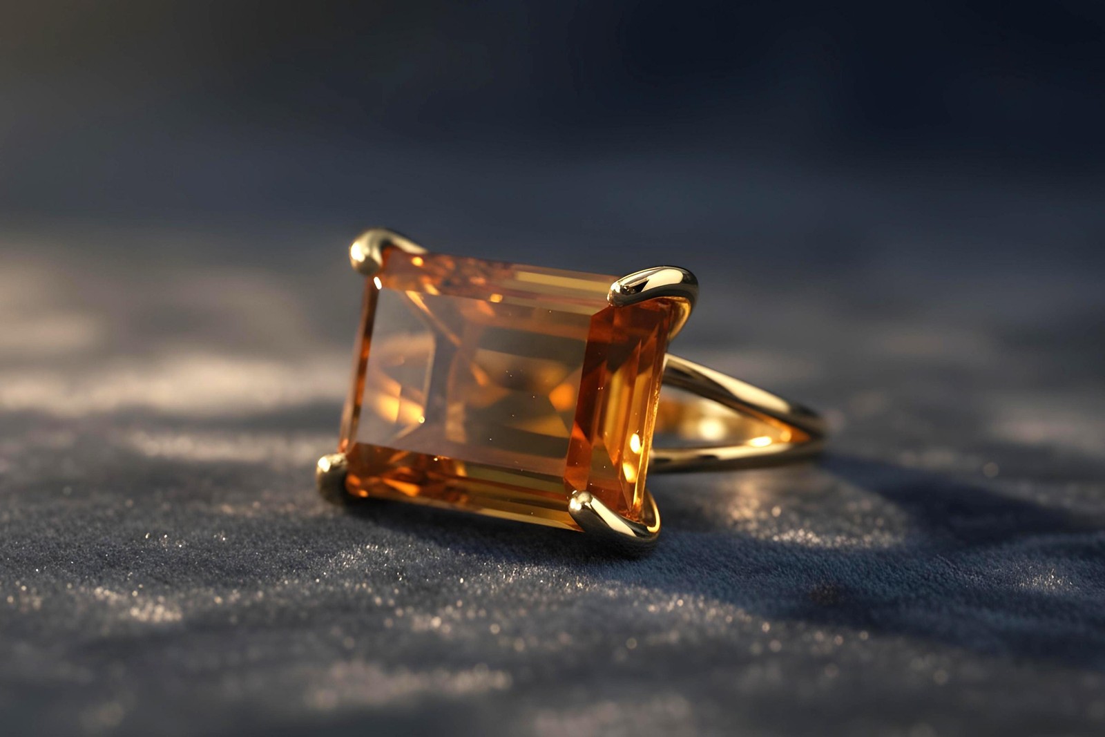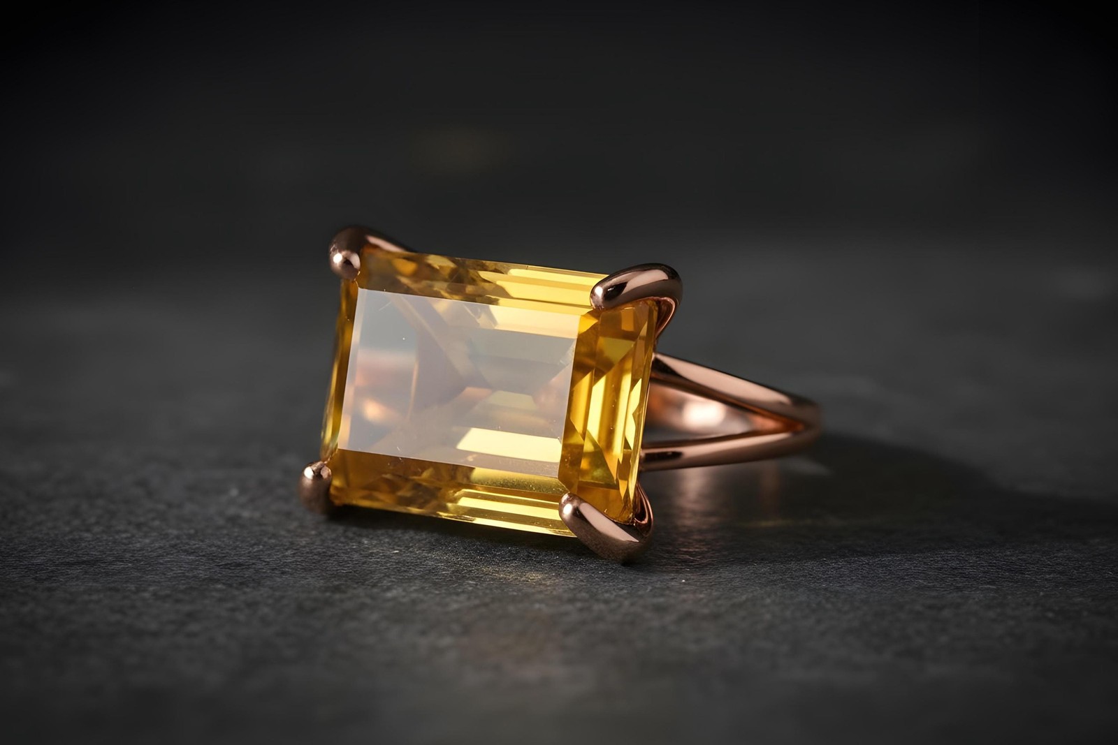 14k Gold Citrine Ring Emerald Cut Rectangle November Birthstone Jewelry