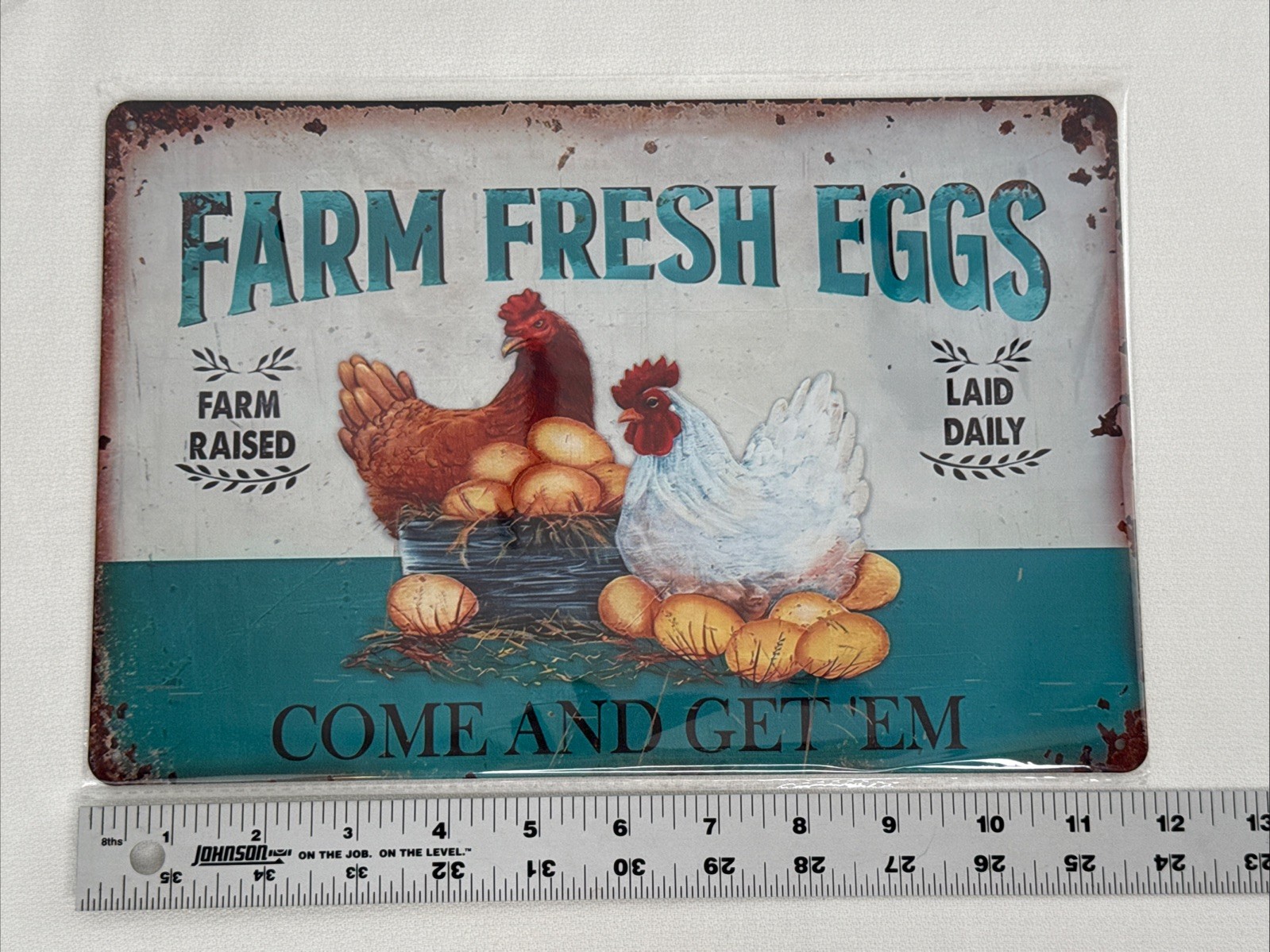 Farm Fresh Eggs Tin Metal Sign - Rustic Farmhouse Wall Decor, New