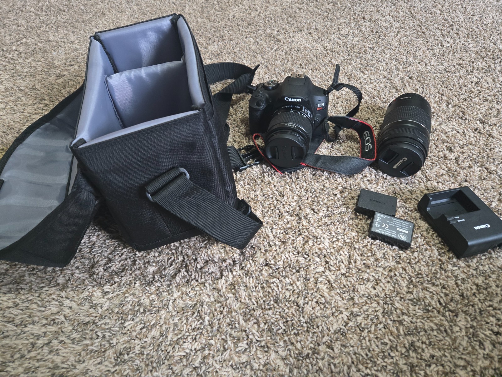 как выглядит Canon EOS Rebel T7 DSLR Camera EF18-55mm EF 75-300mm Lens 2727C021 фото