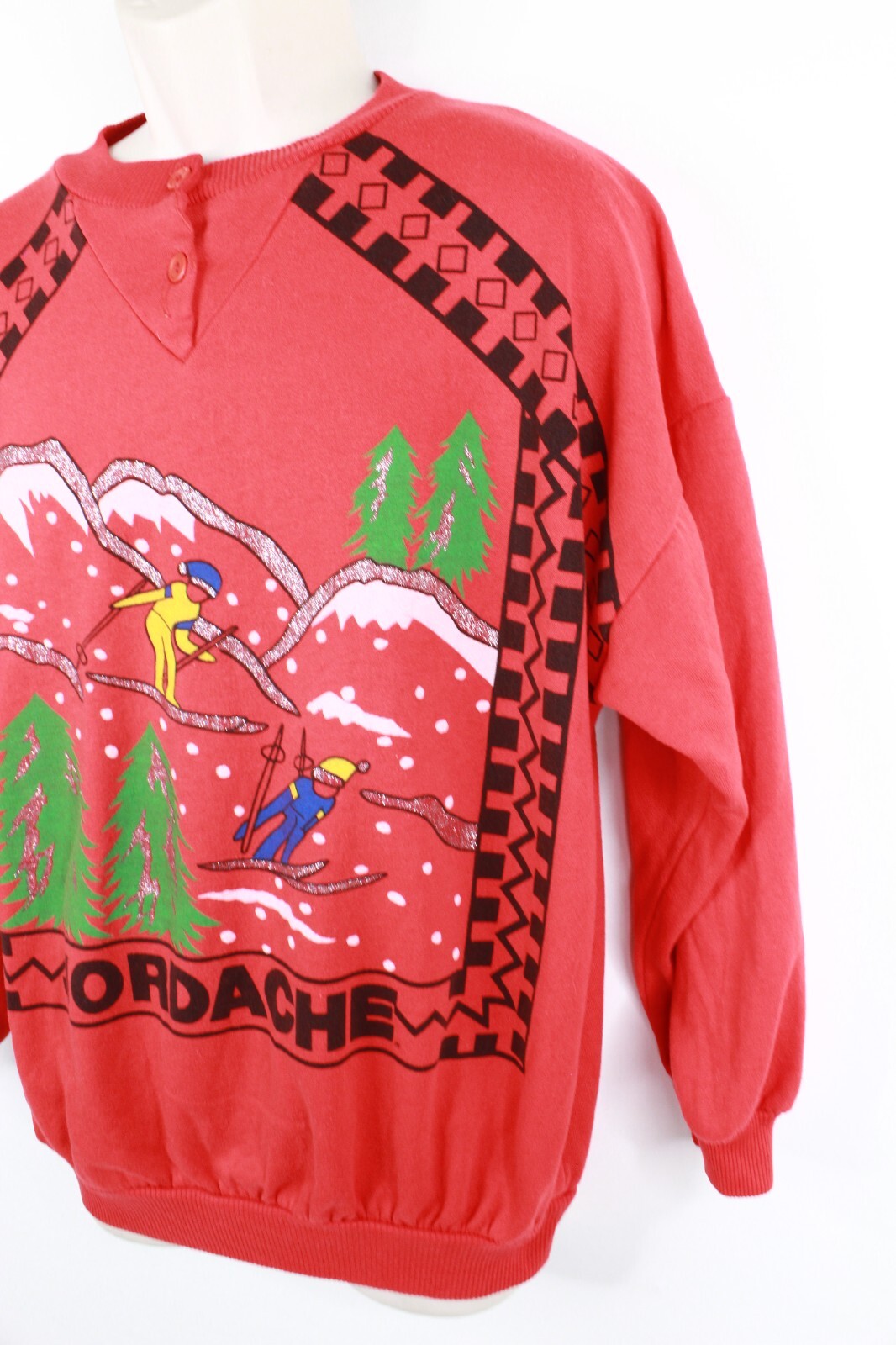 Vintage Jordache Sweatshirt Womens Large Red Winter Ski Christmas