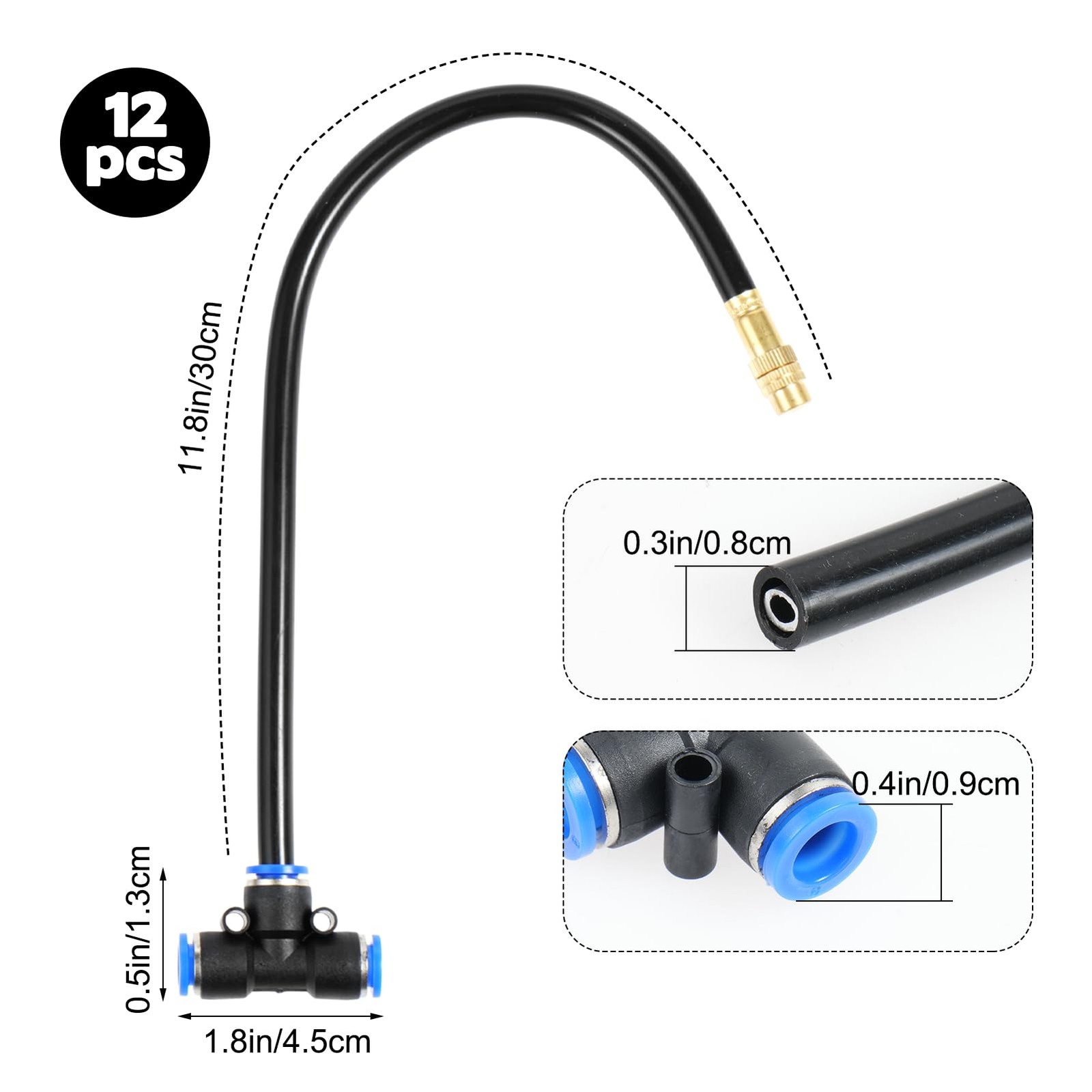 12 Pcs Brass Misting Nozzles Tee with 12 Inch Built in Hose for Patio Outdoor...