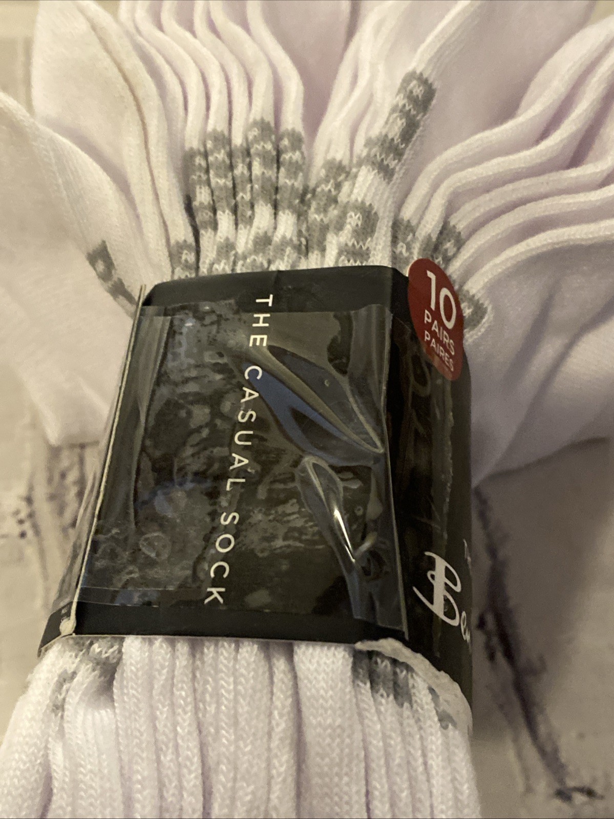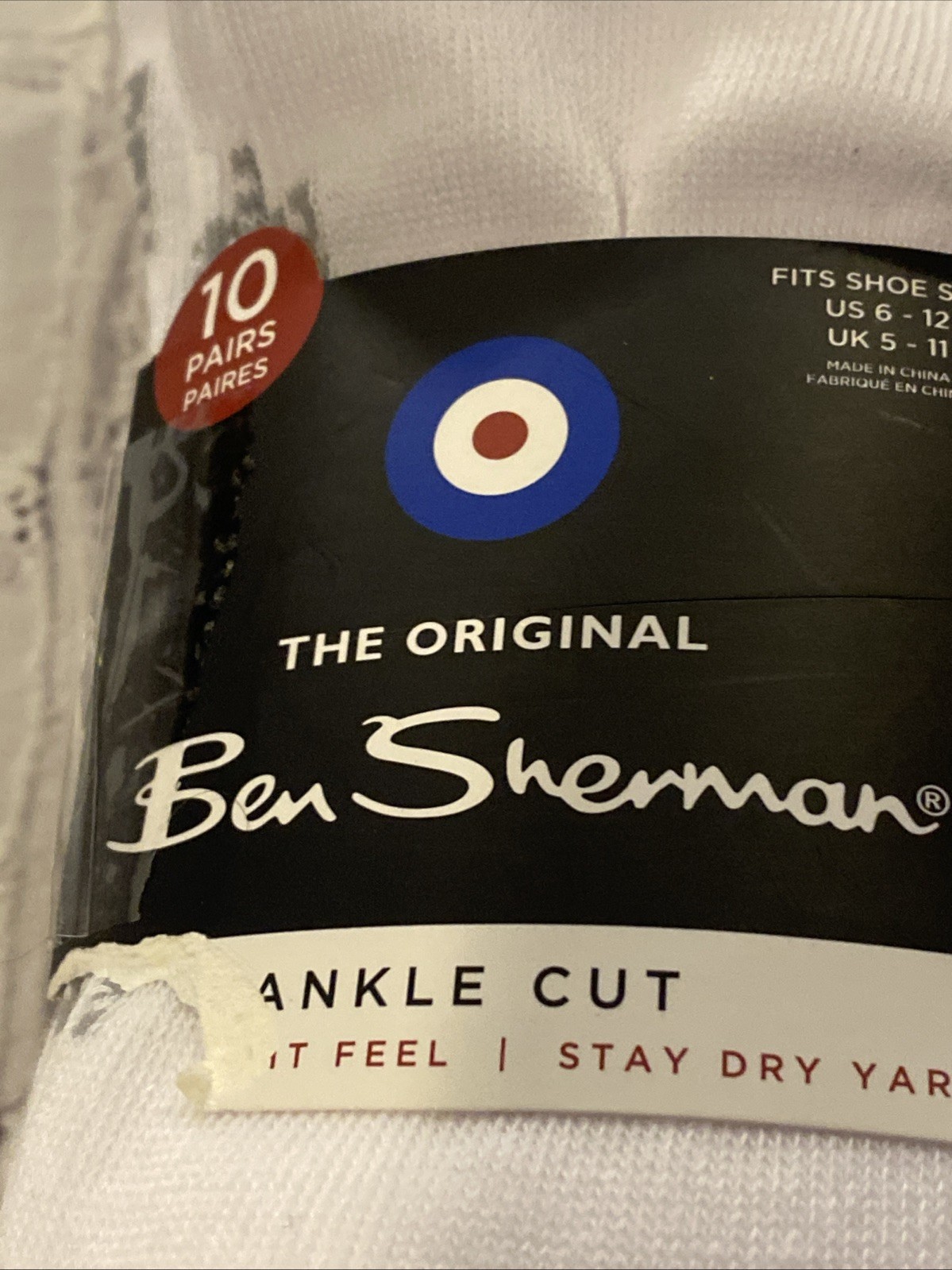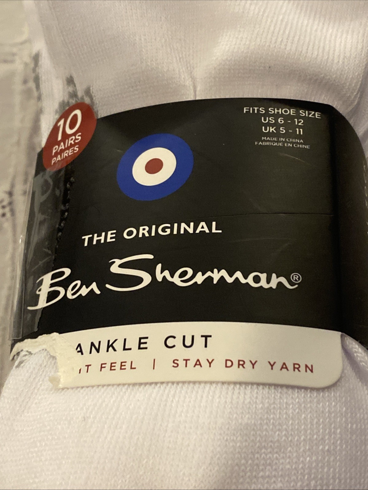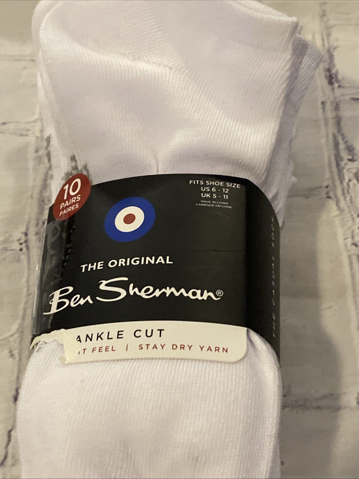 BEN SHERMAN Men's 6-12 Shoe Size Ankle Cut Lightweight Socks 10 Pairs White NEW