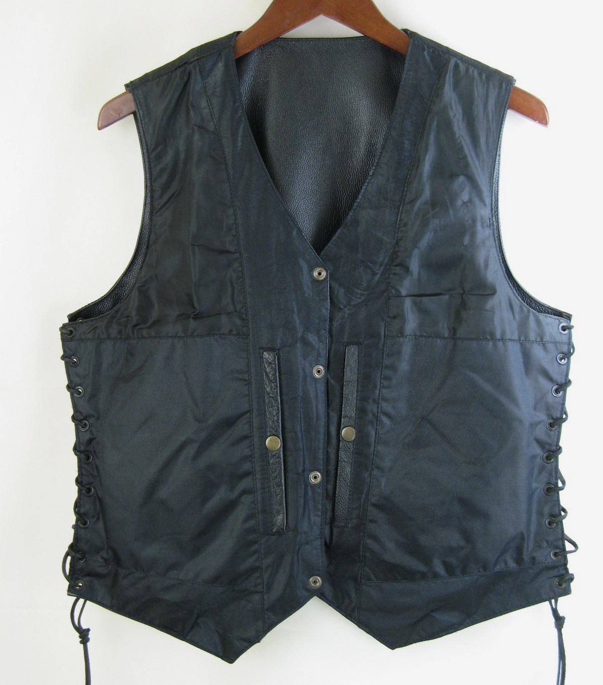 Leather King Vest Mens XL Black Leather Biker Motorcycle Concealed Carry Western