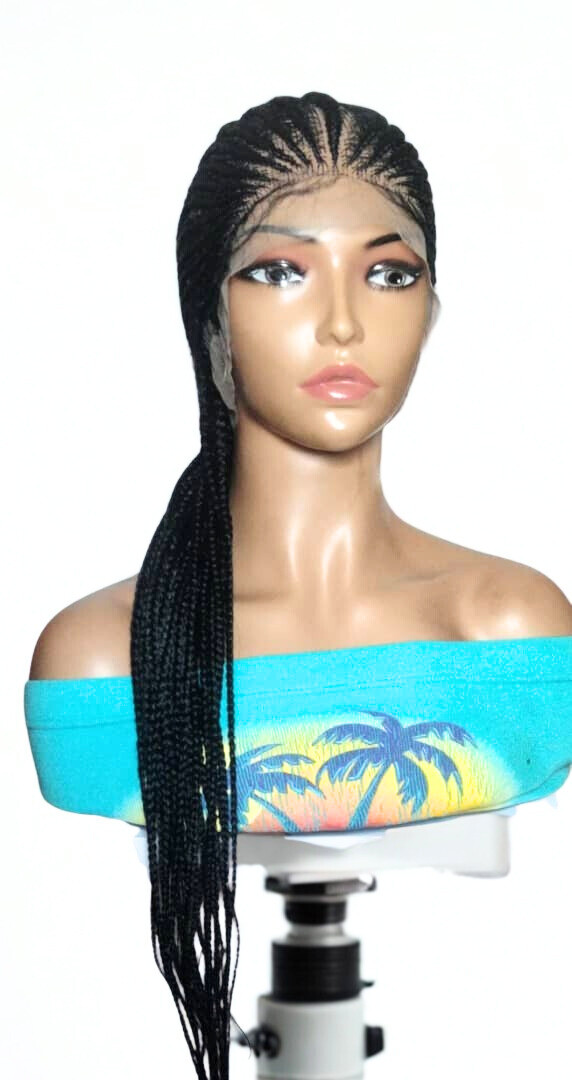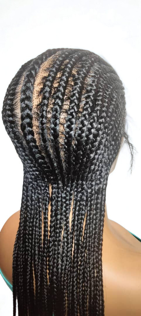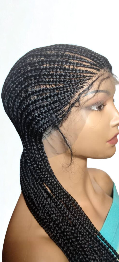 Braided Wig. Large Black Cornrow Braids. Full Lace Baby Hair. Lemonade Braids
