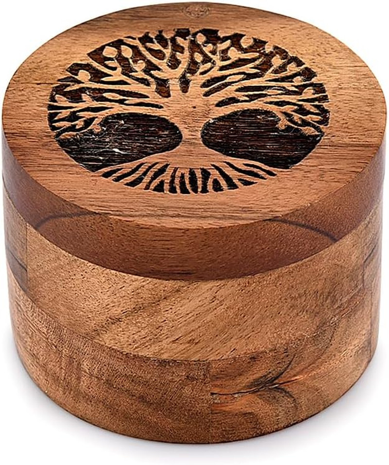 • Handmade Acacia Wood Urn for Human Ashes, Tree of Life Wooden Box Urns for Ashes