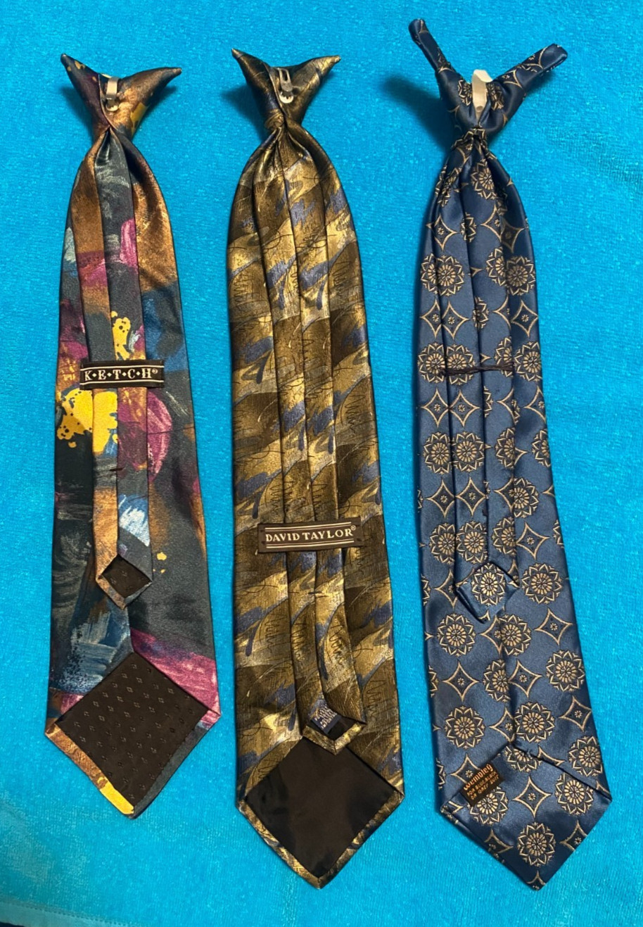 Clip on ties for men. Assorted colors. 17-18 in length.