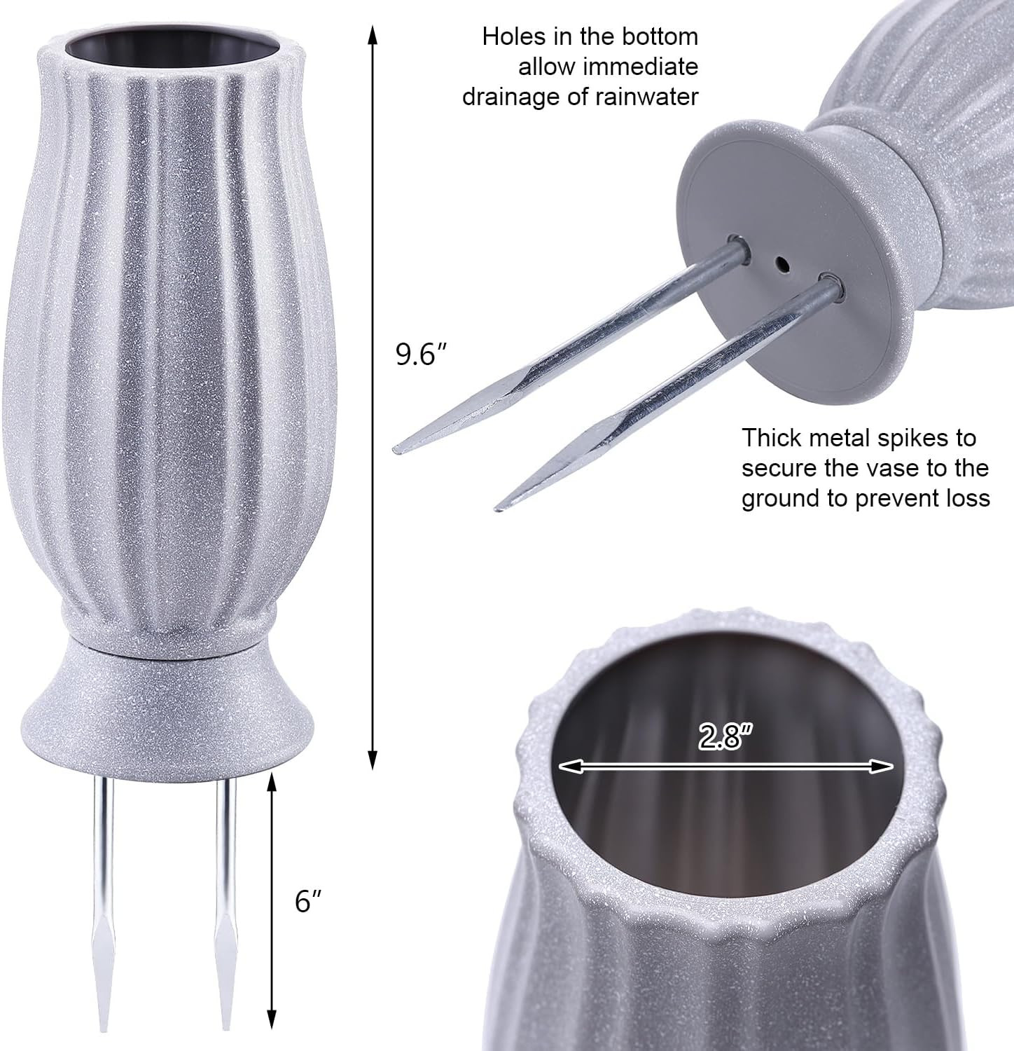 • Cemetery Vase for Grave Decorations with Metal Spike Headstones Flower Holder fo