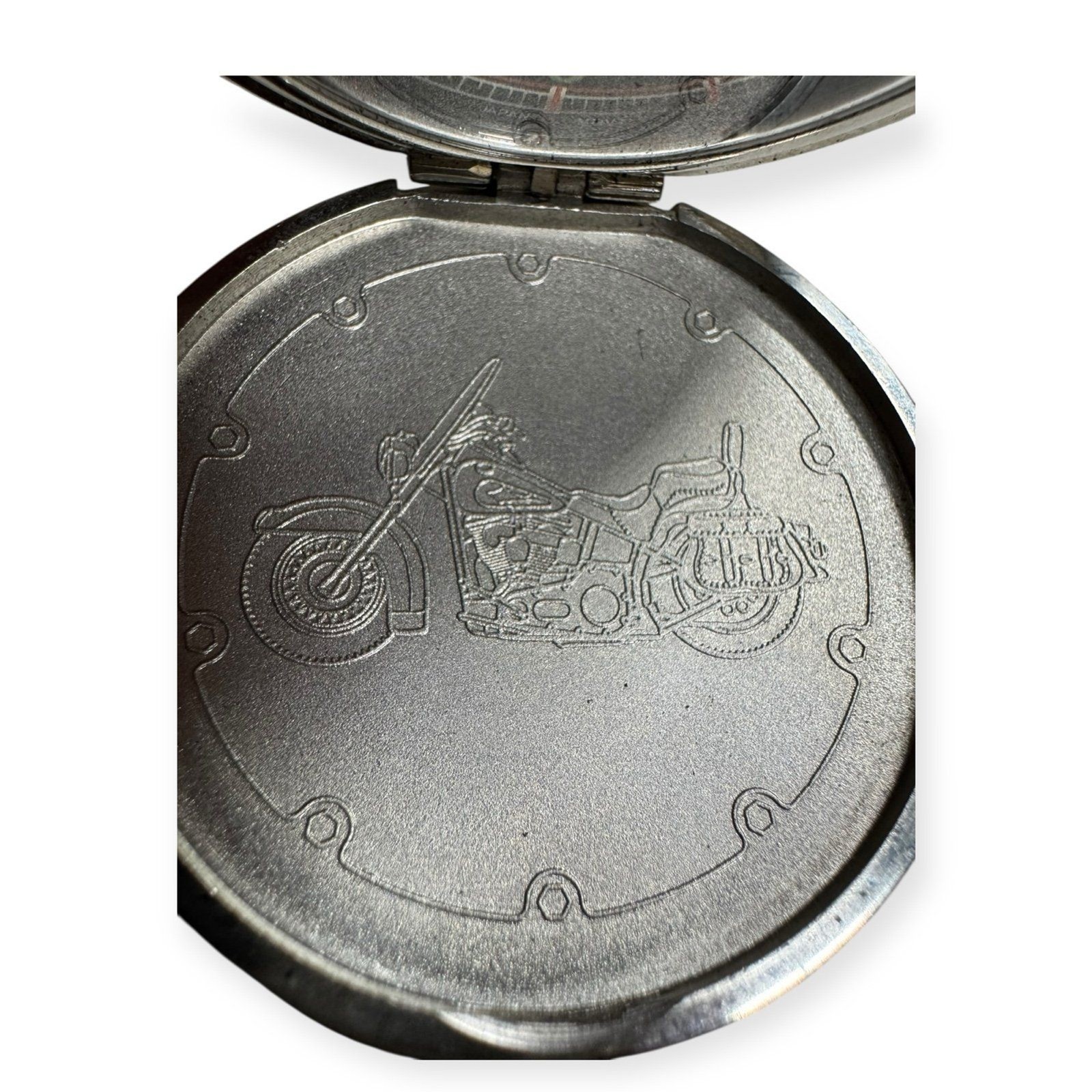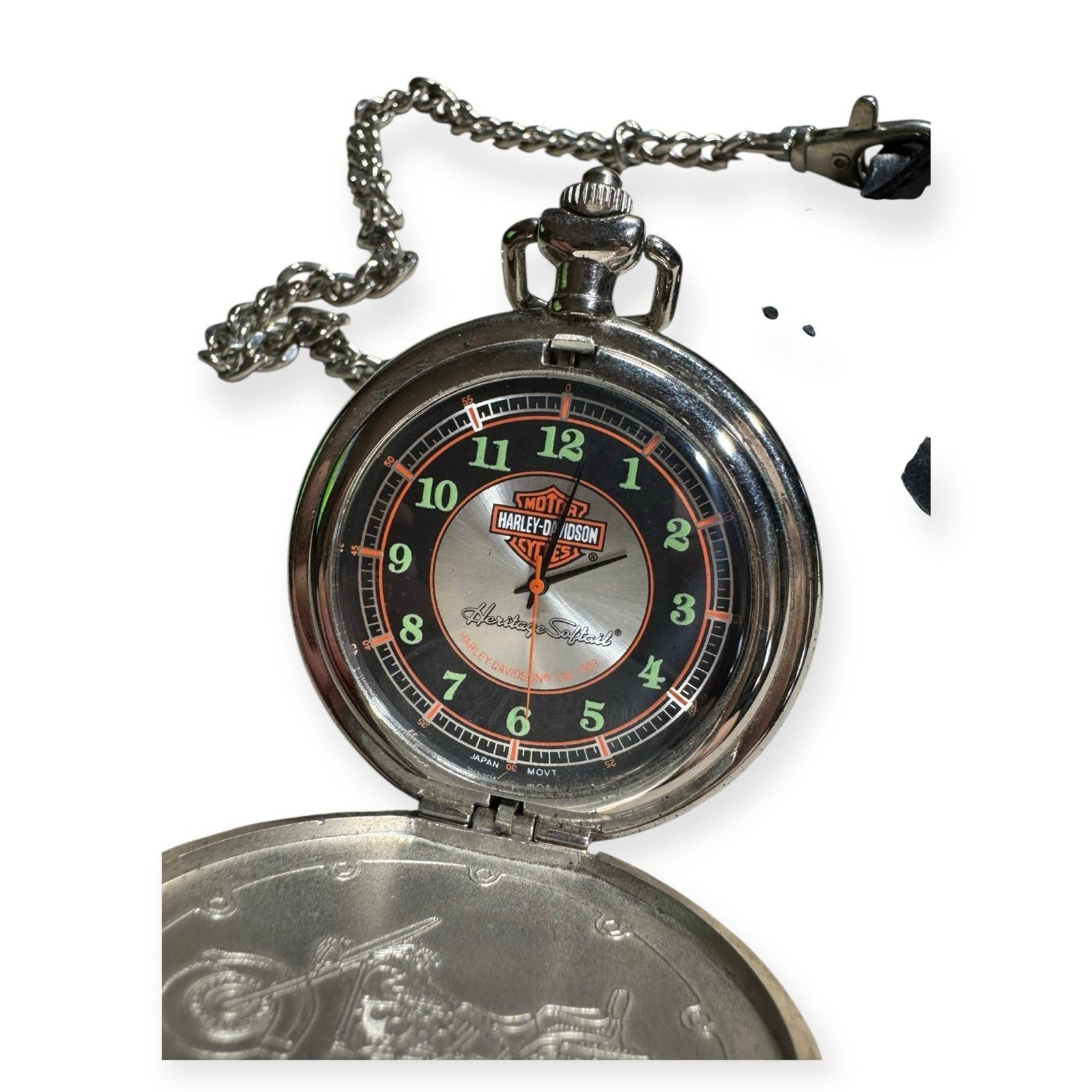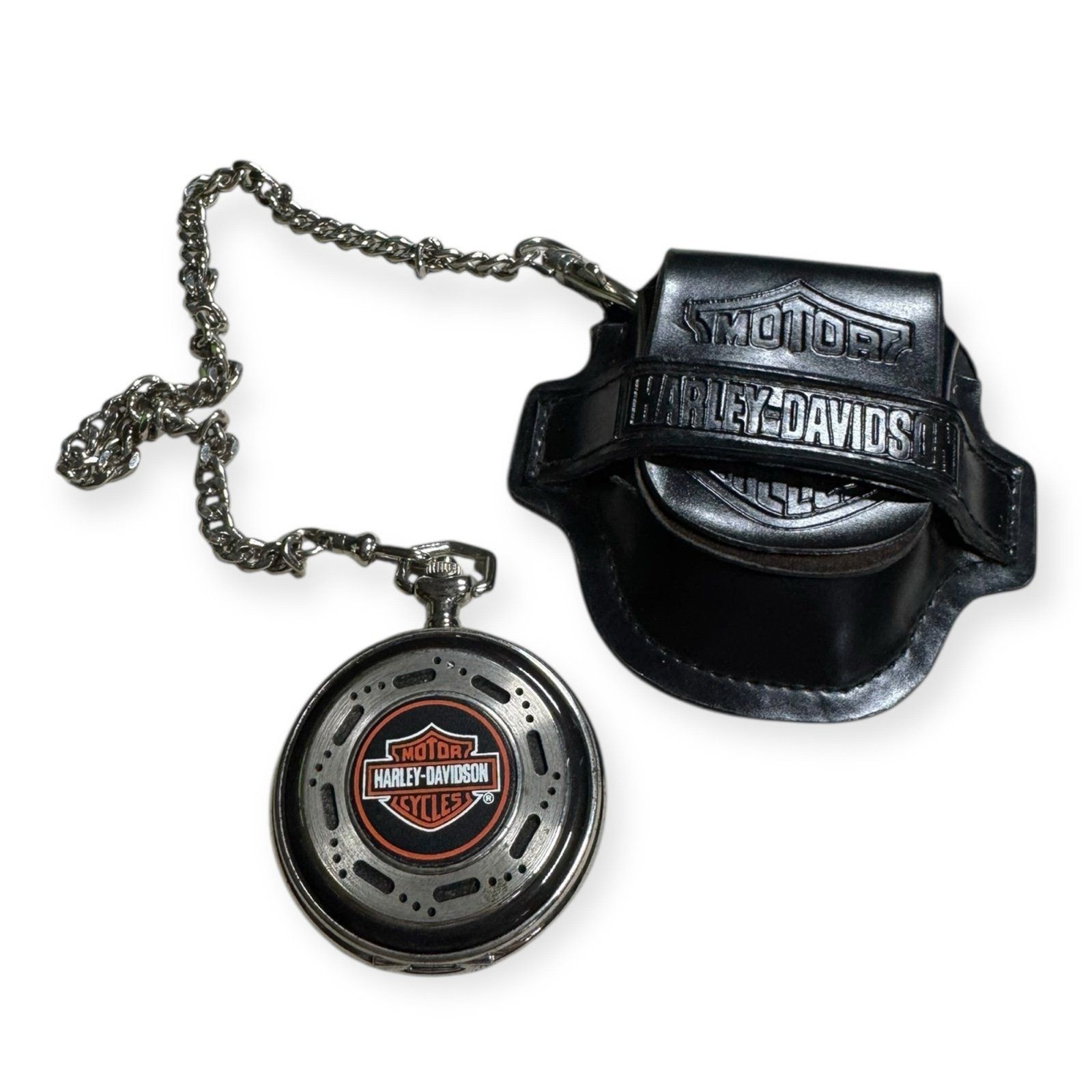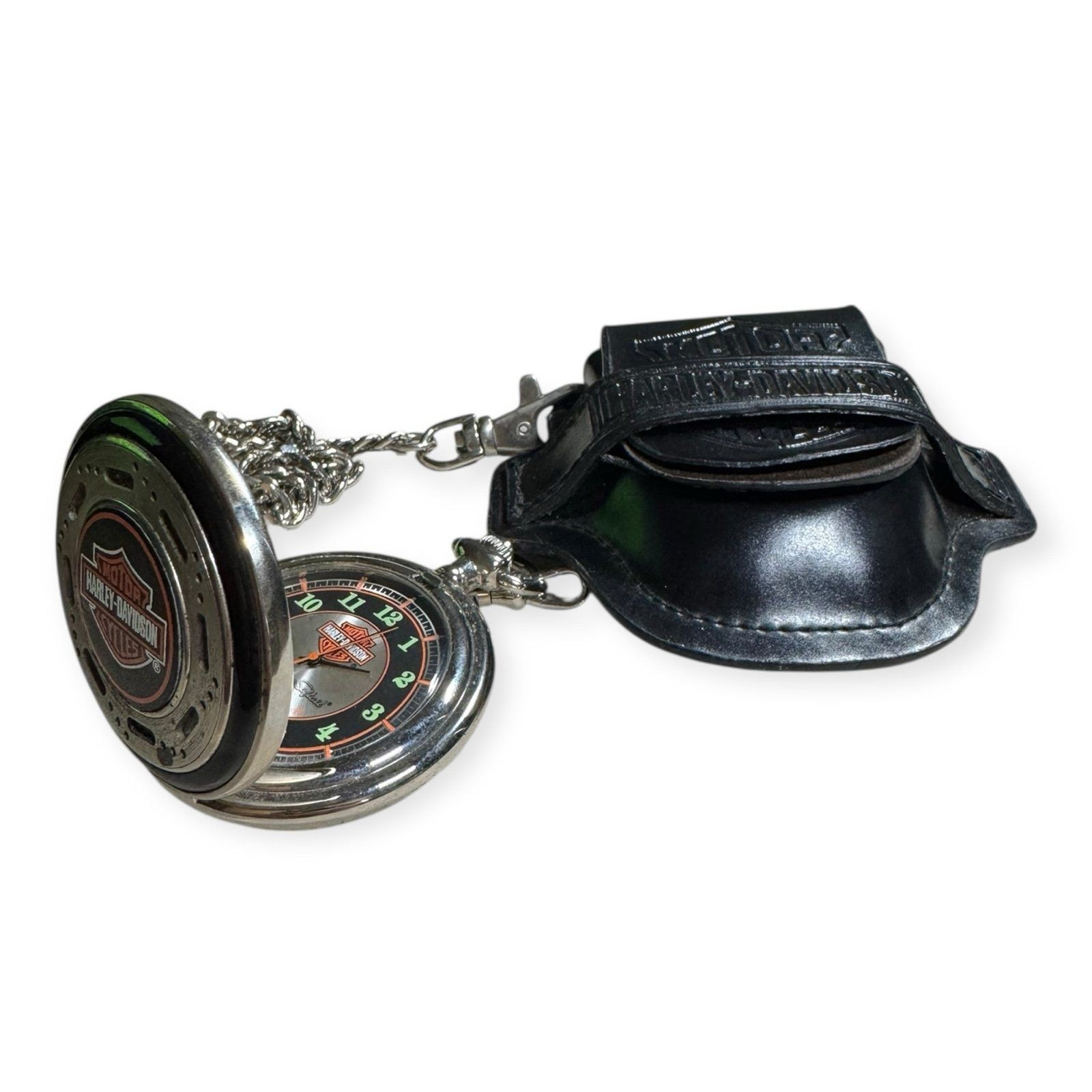 Harley-Davidson Pocket Watch Glow in Dark Vintage Quartz Chain w/ Leather Case
