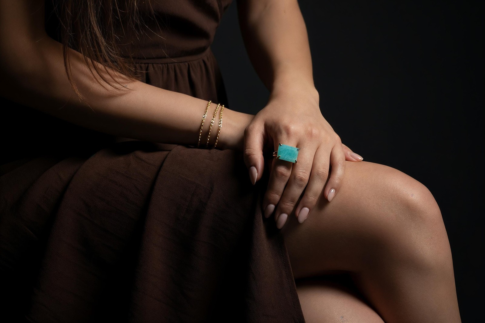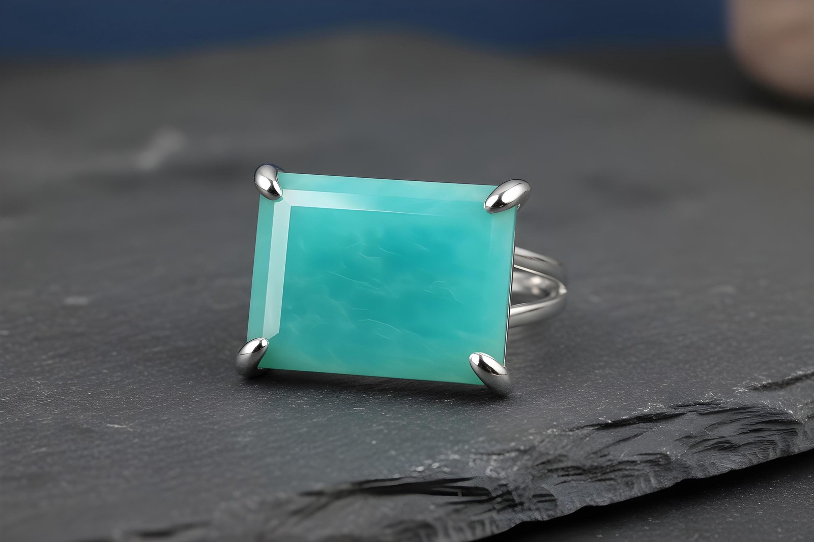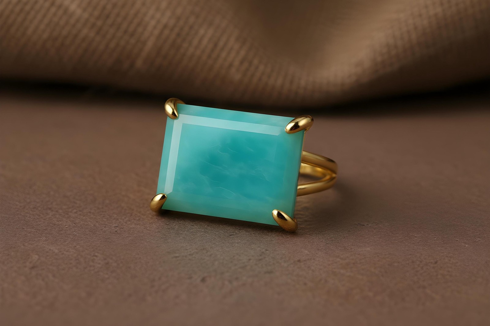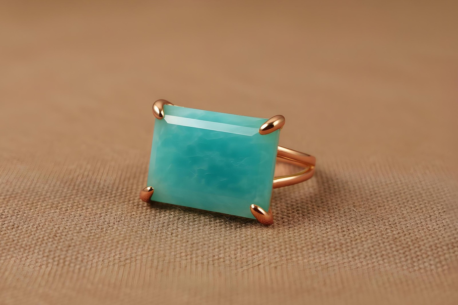 Amazonite Ring Anemone Jewelry 14k Gold Rectangle Cut Custom Size