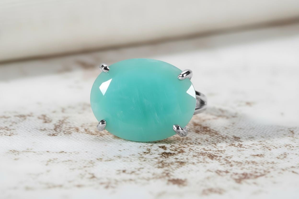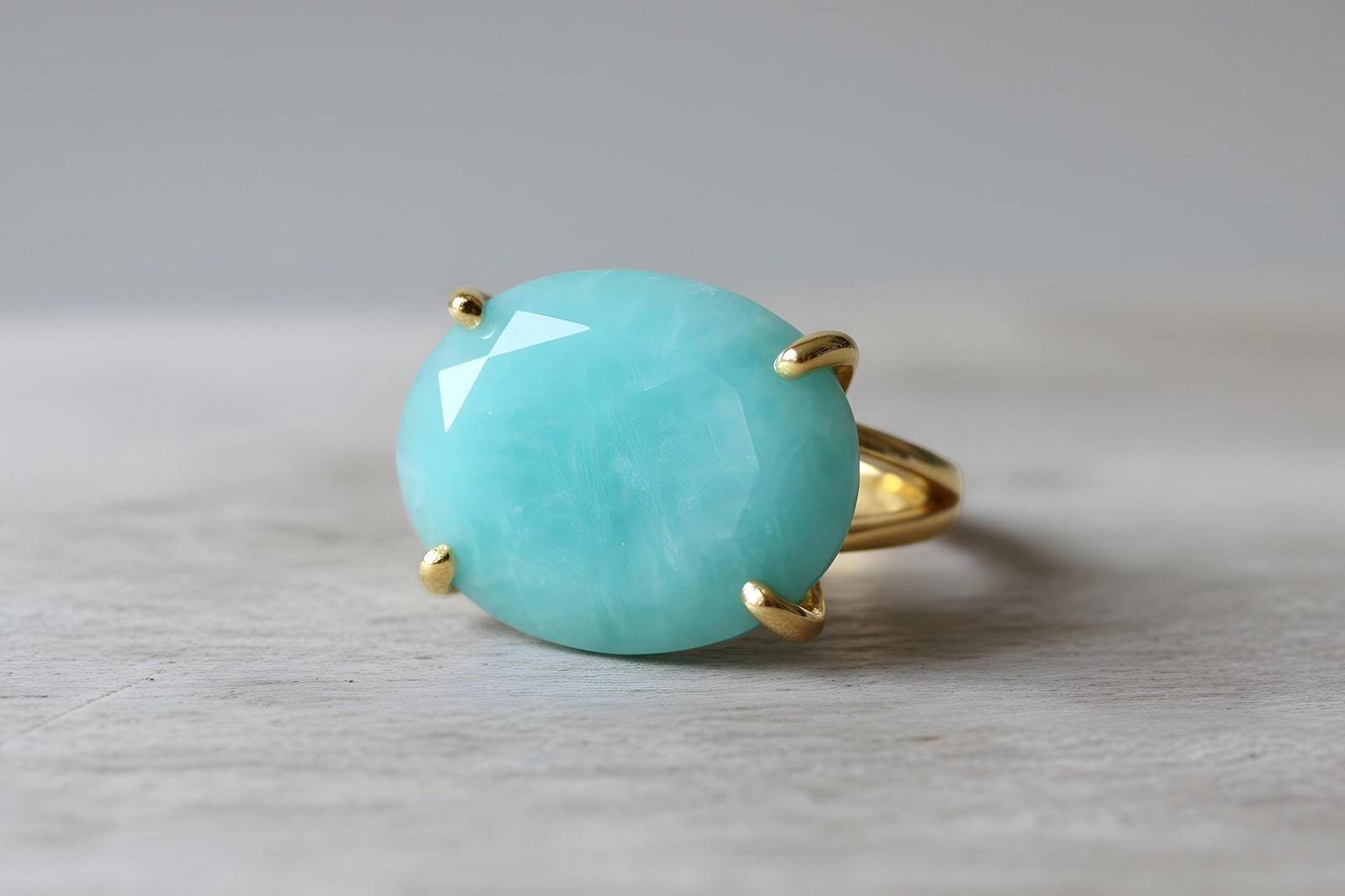 Amazonite Ring Anemone Jewelry 14k Gold Oval Cut Faceted Gemstone